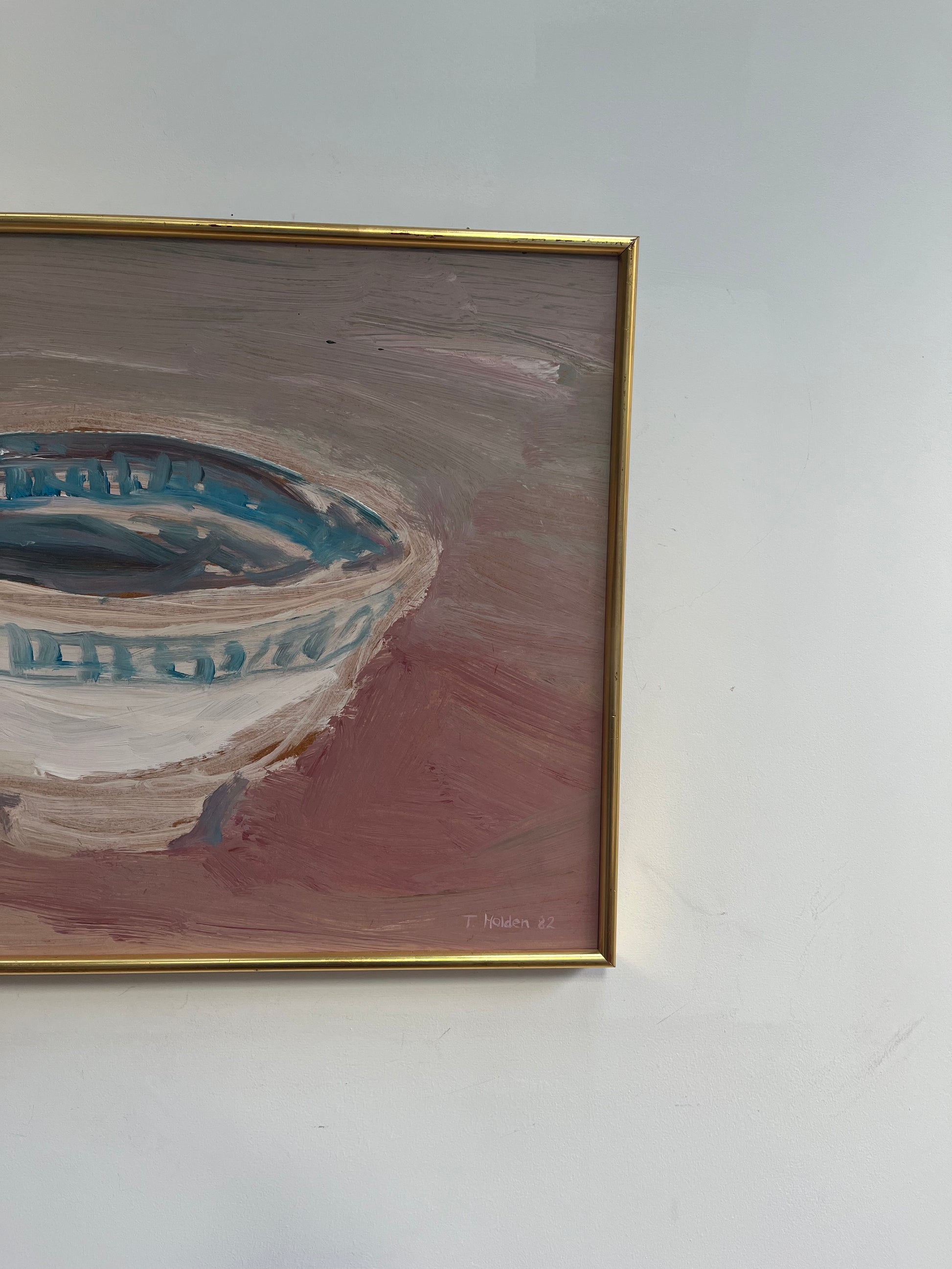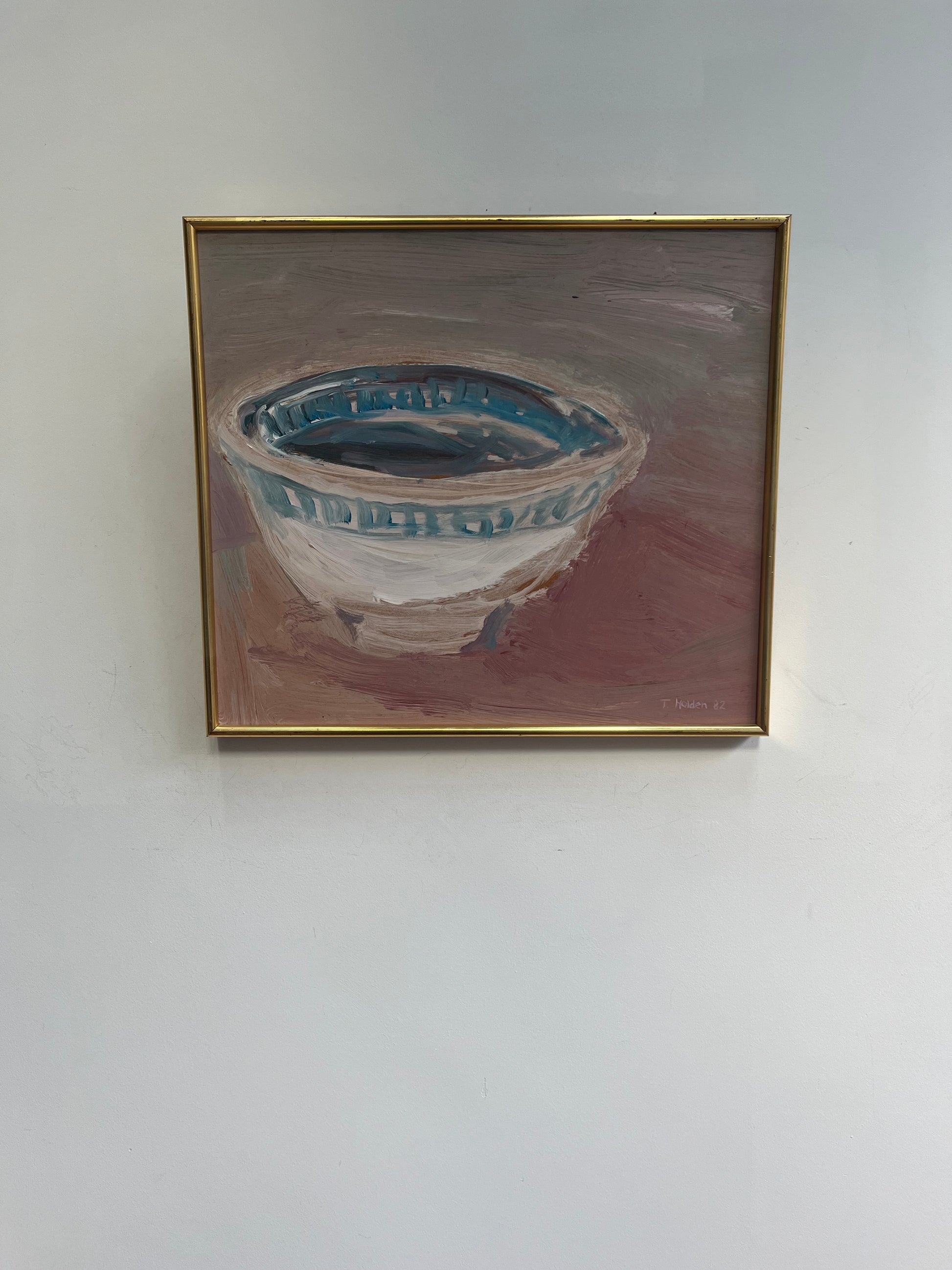 Lovely still life piece of a blue bowl. Pretty little gold frame.