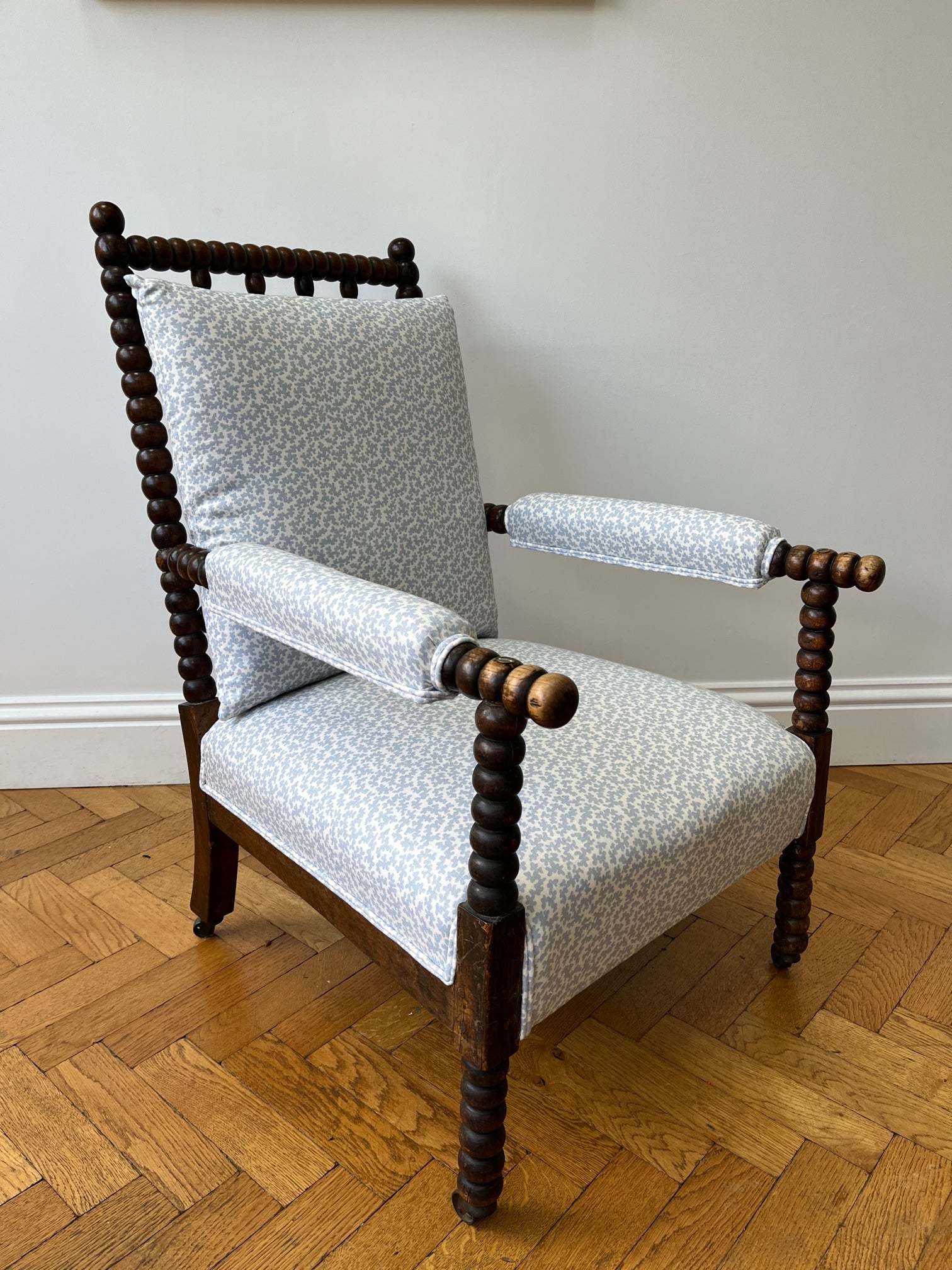 Absolutely stunning bobbin armchair from the 1800's on original brass castors.