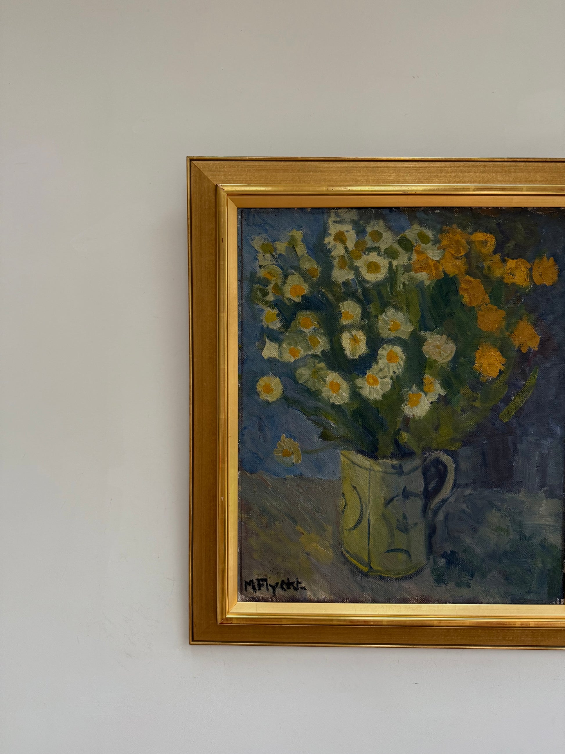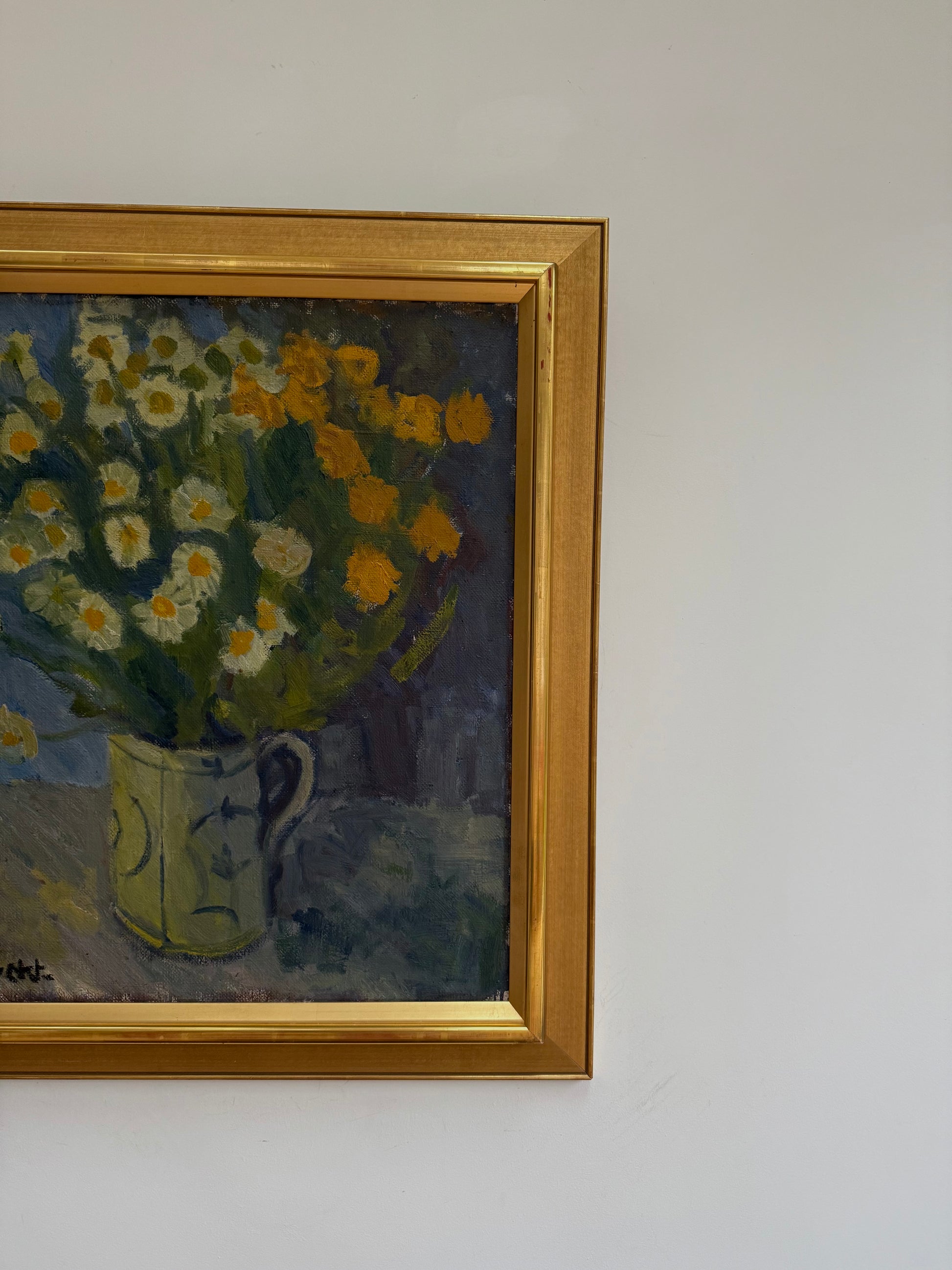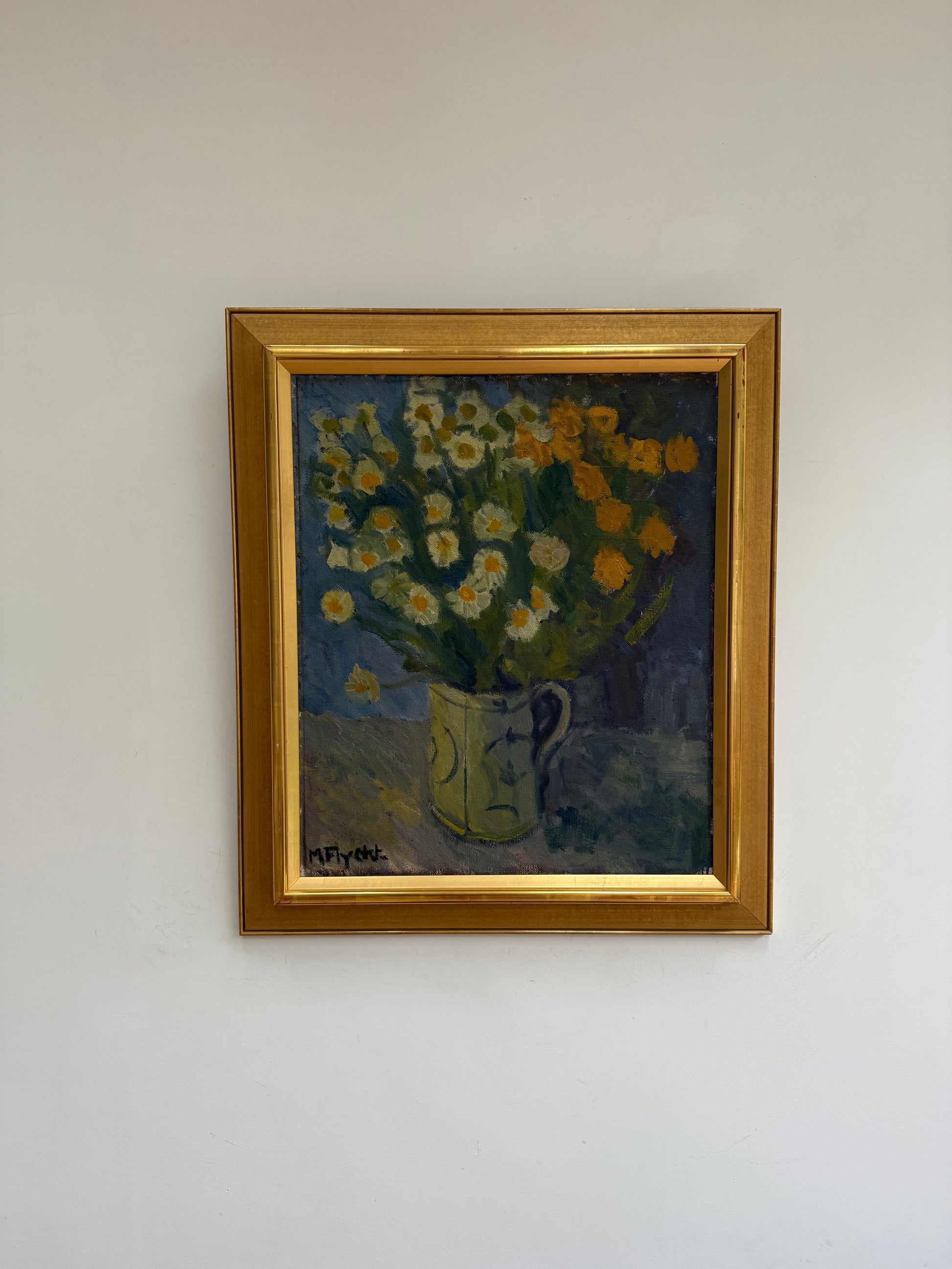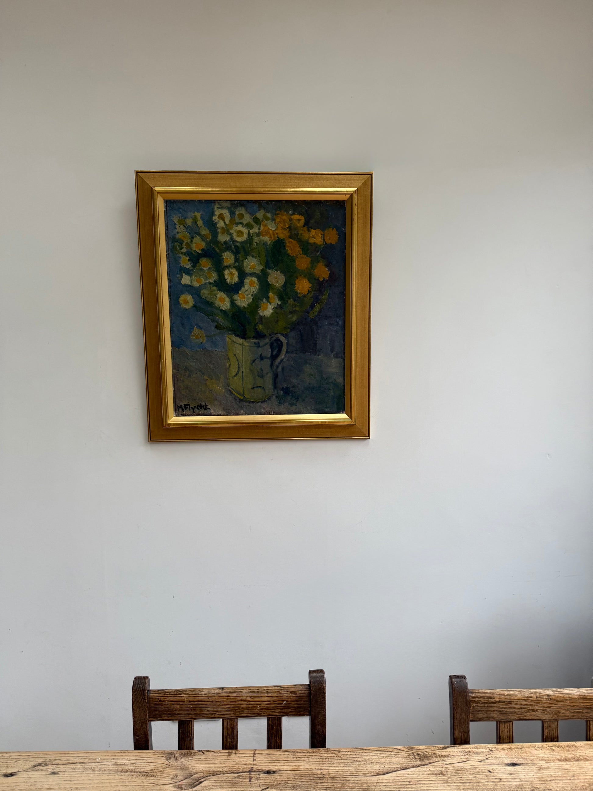 A lovely large floral still life. Colours balanced so well so not too ‘floral’. Excellent large gold frame making it sing.