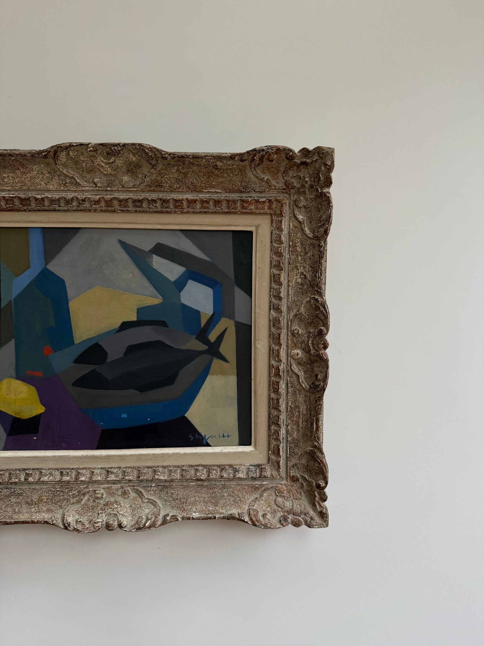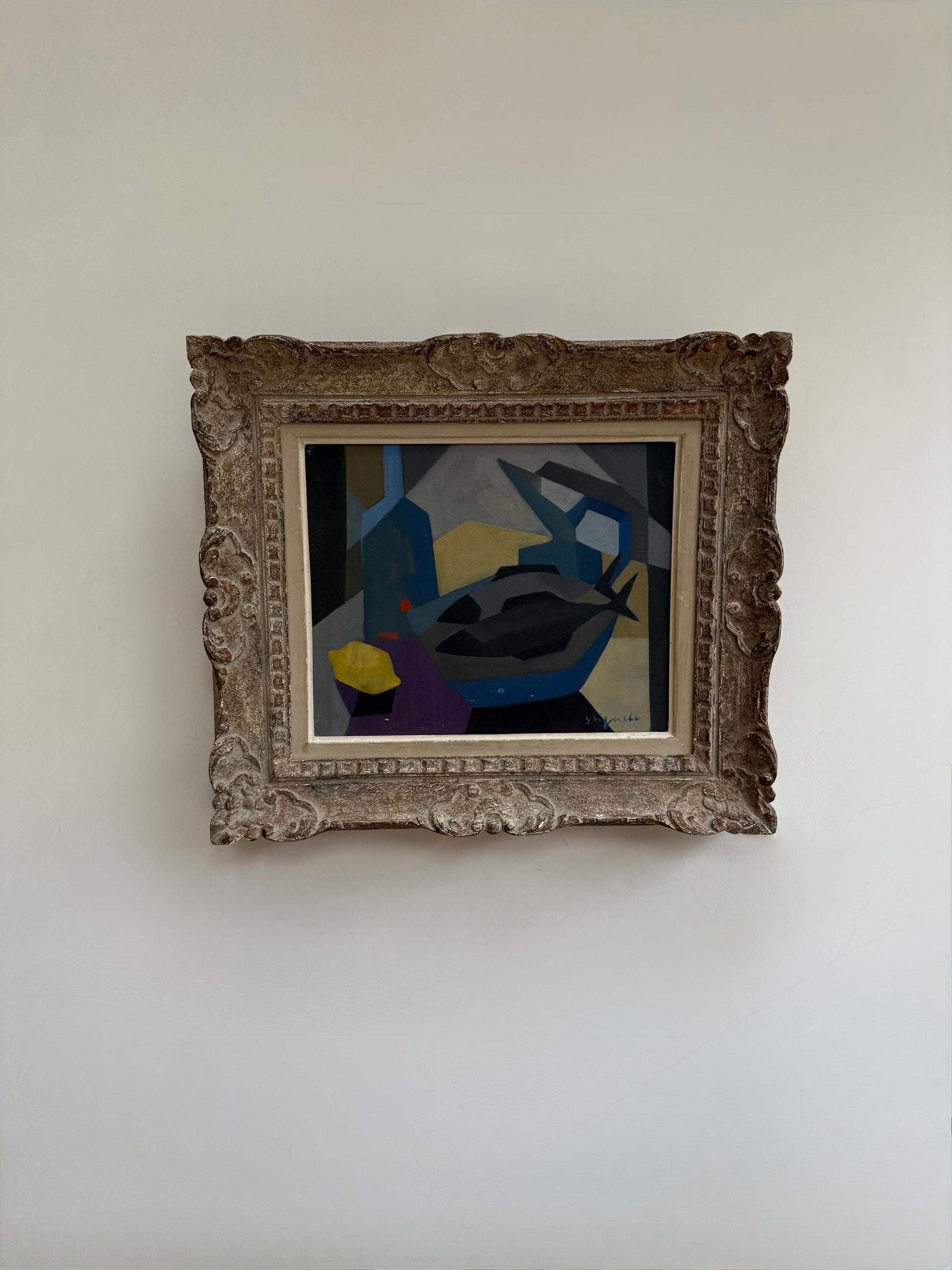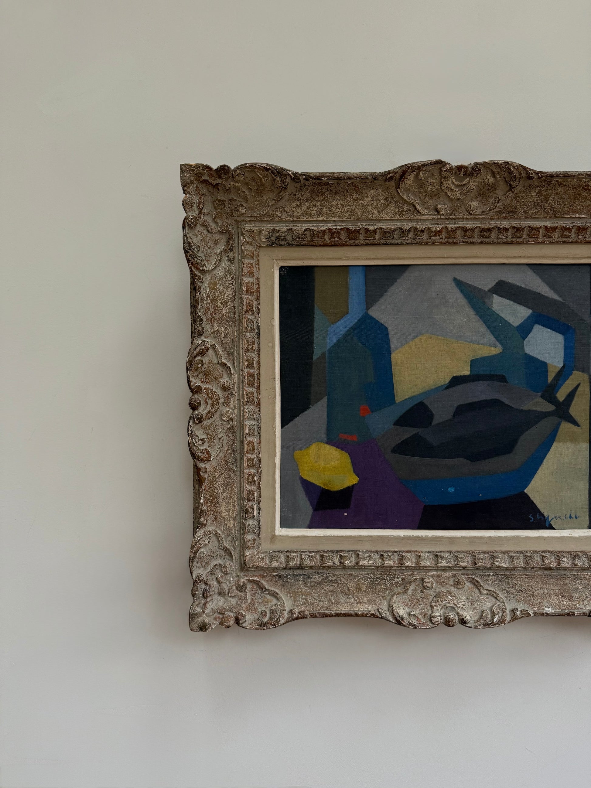 Incredible cubist still life piece with stunning decorative frame - such a great balance.