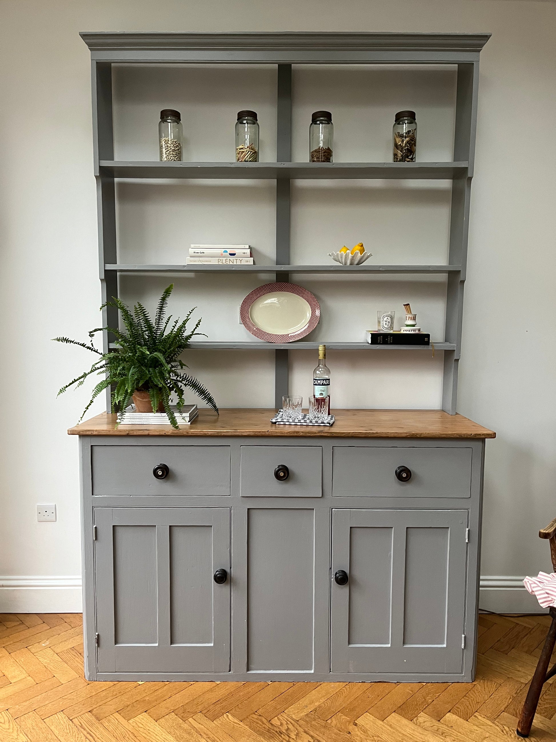 This is a grey blue painted piece which i'd paint to a really beautiful light blue or even a lemony yellow! We have left as is so you can paint to fit to your scheme.