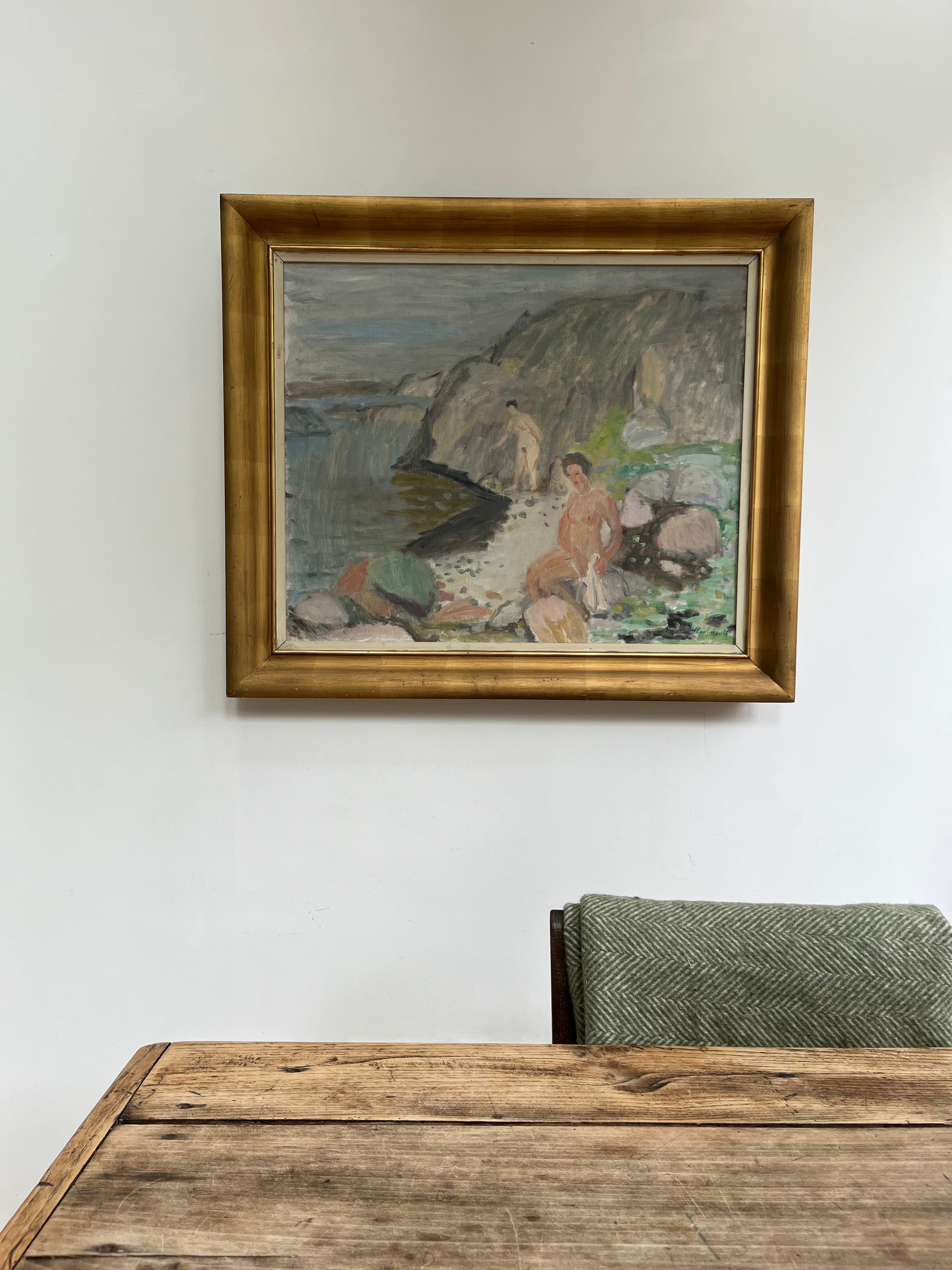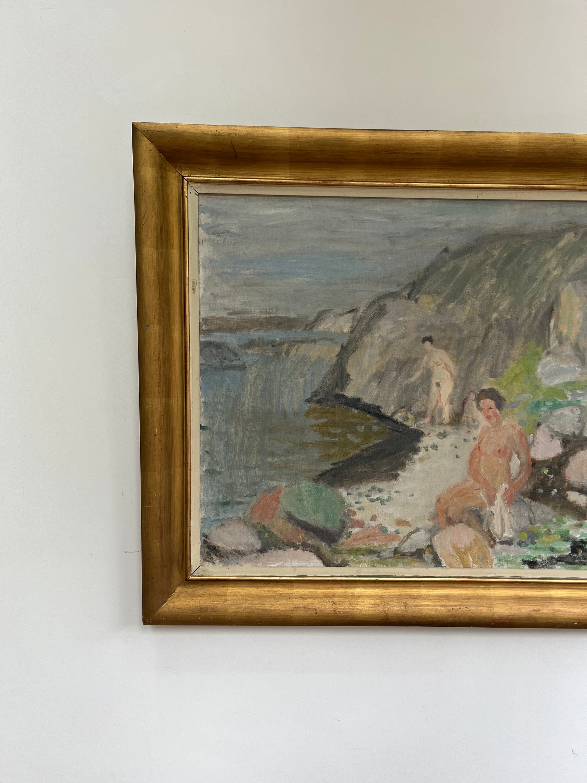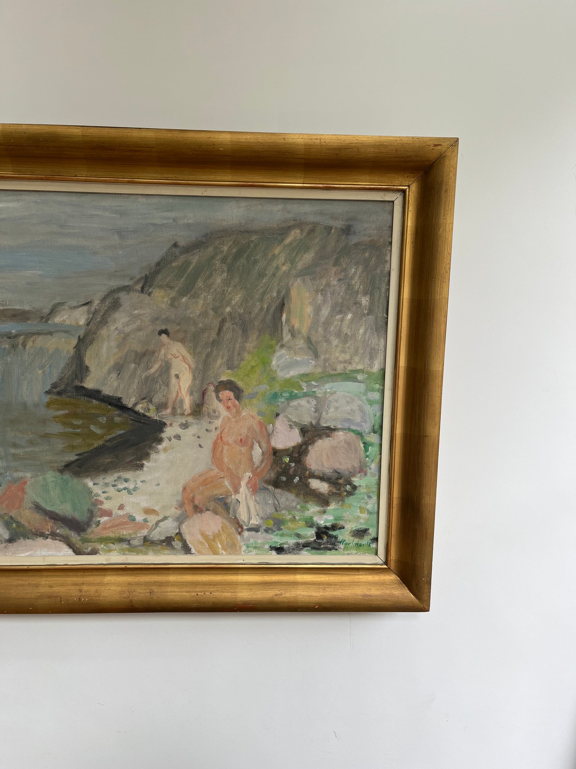 Fabulous nudes bathing at the beach. Lovely light blues and pinks.