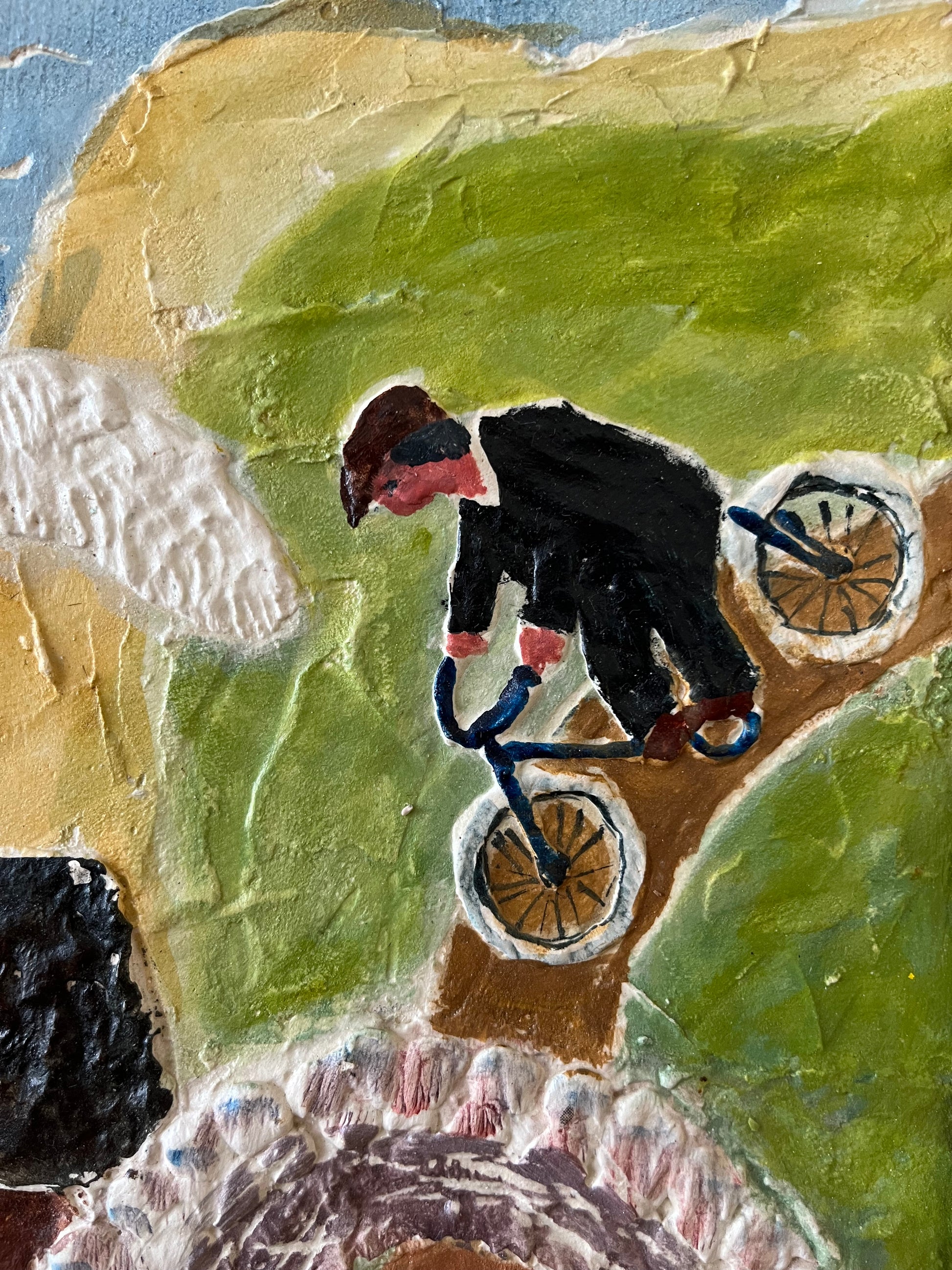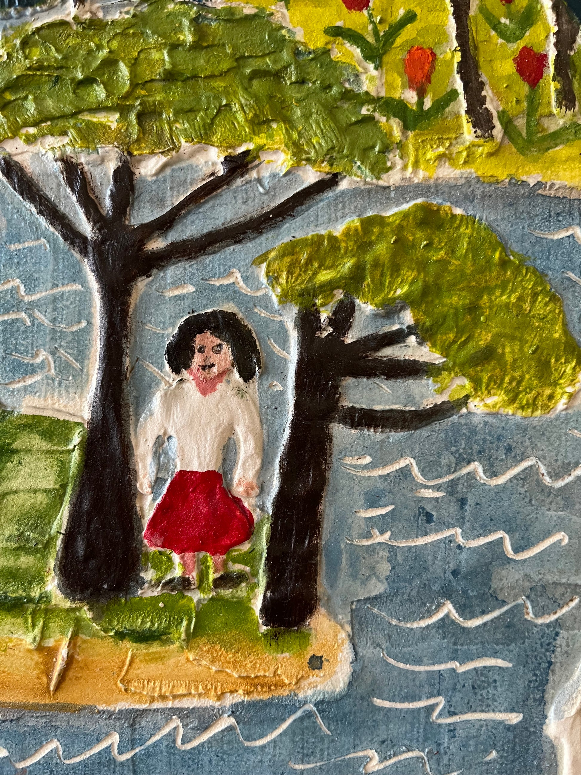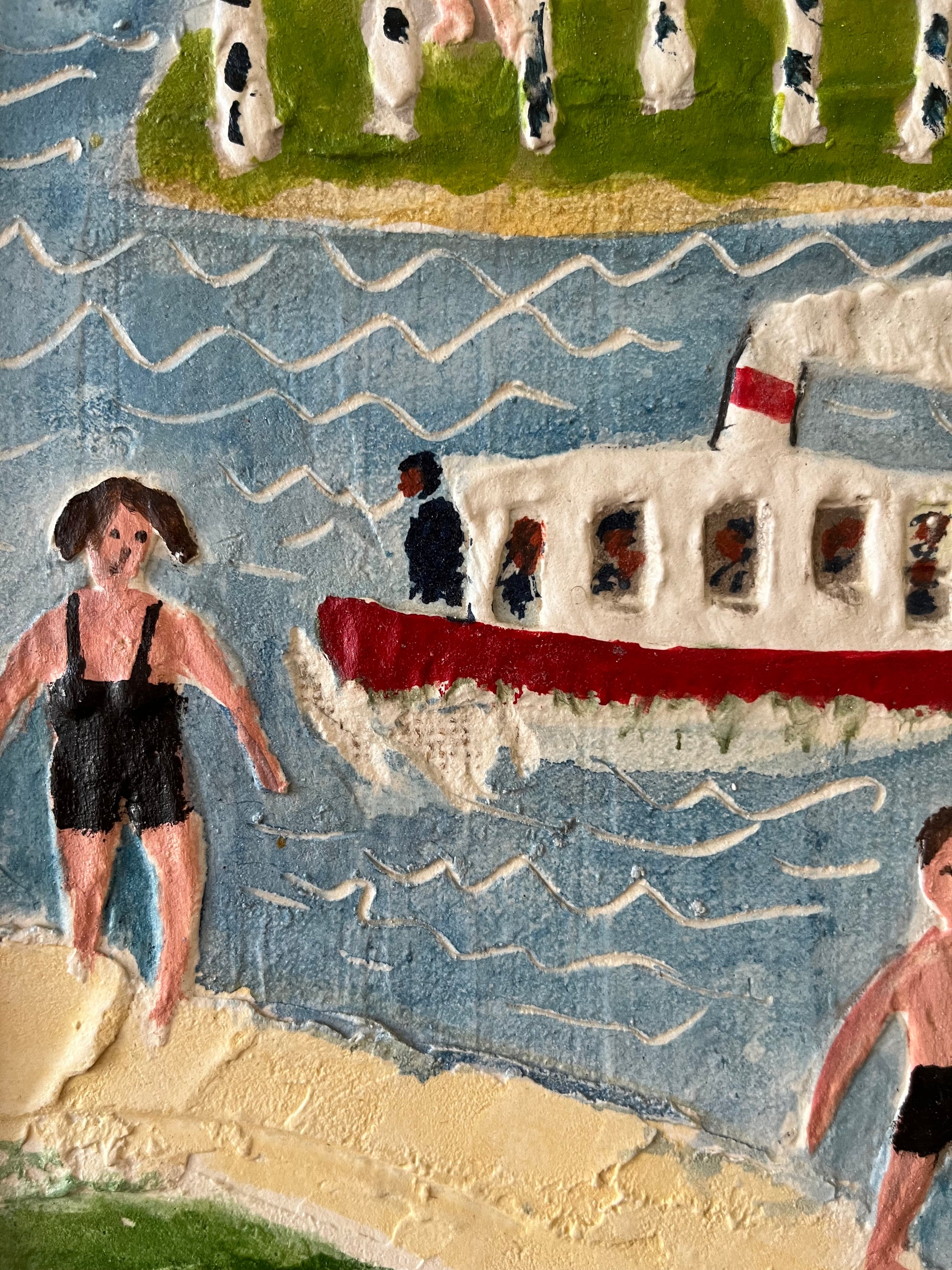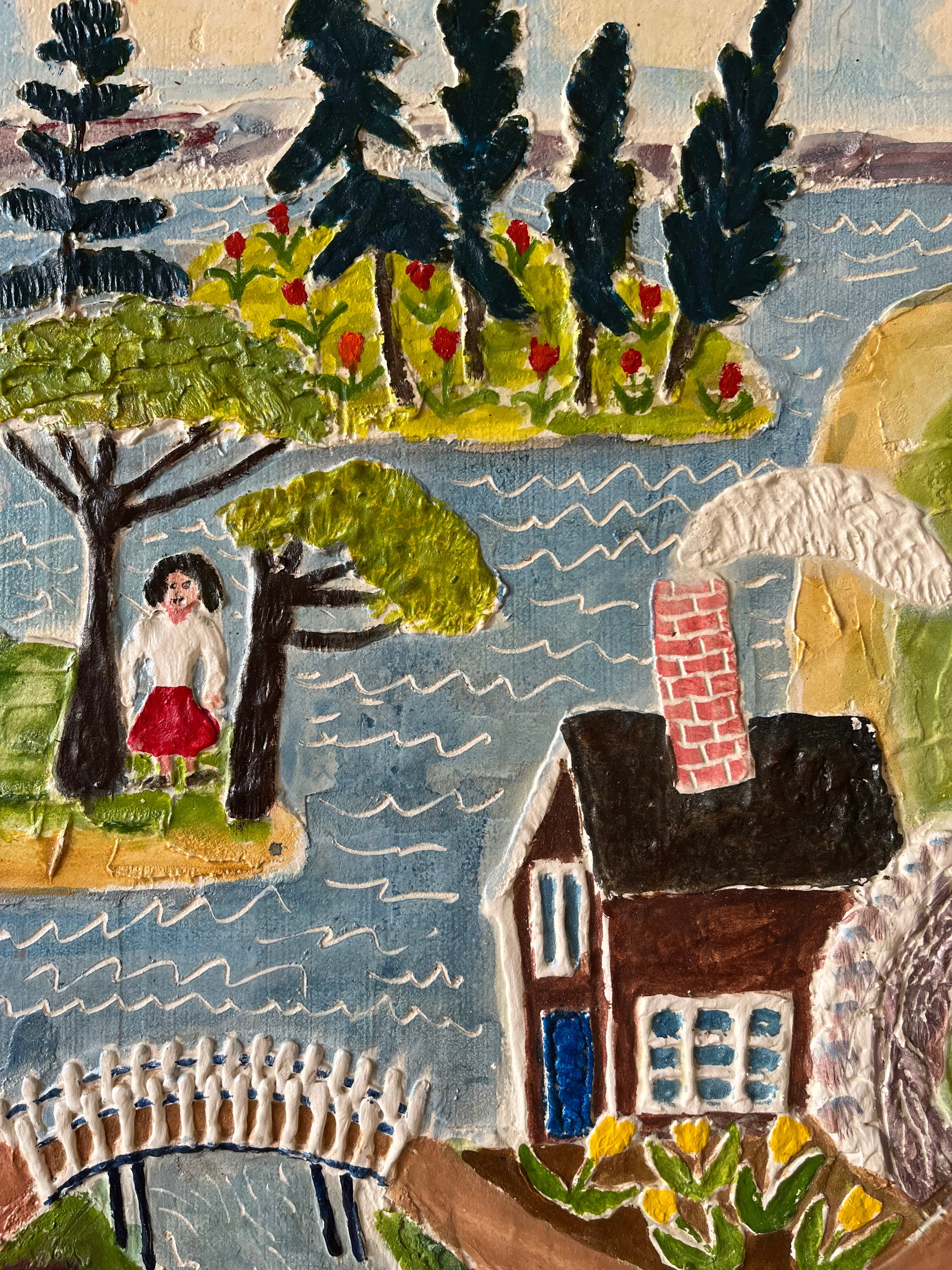 The coolest Naive style oil on panel. Amazing primary colours and coolest little characters!
