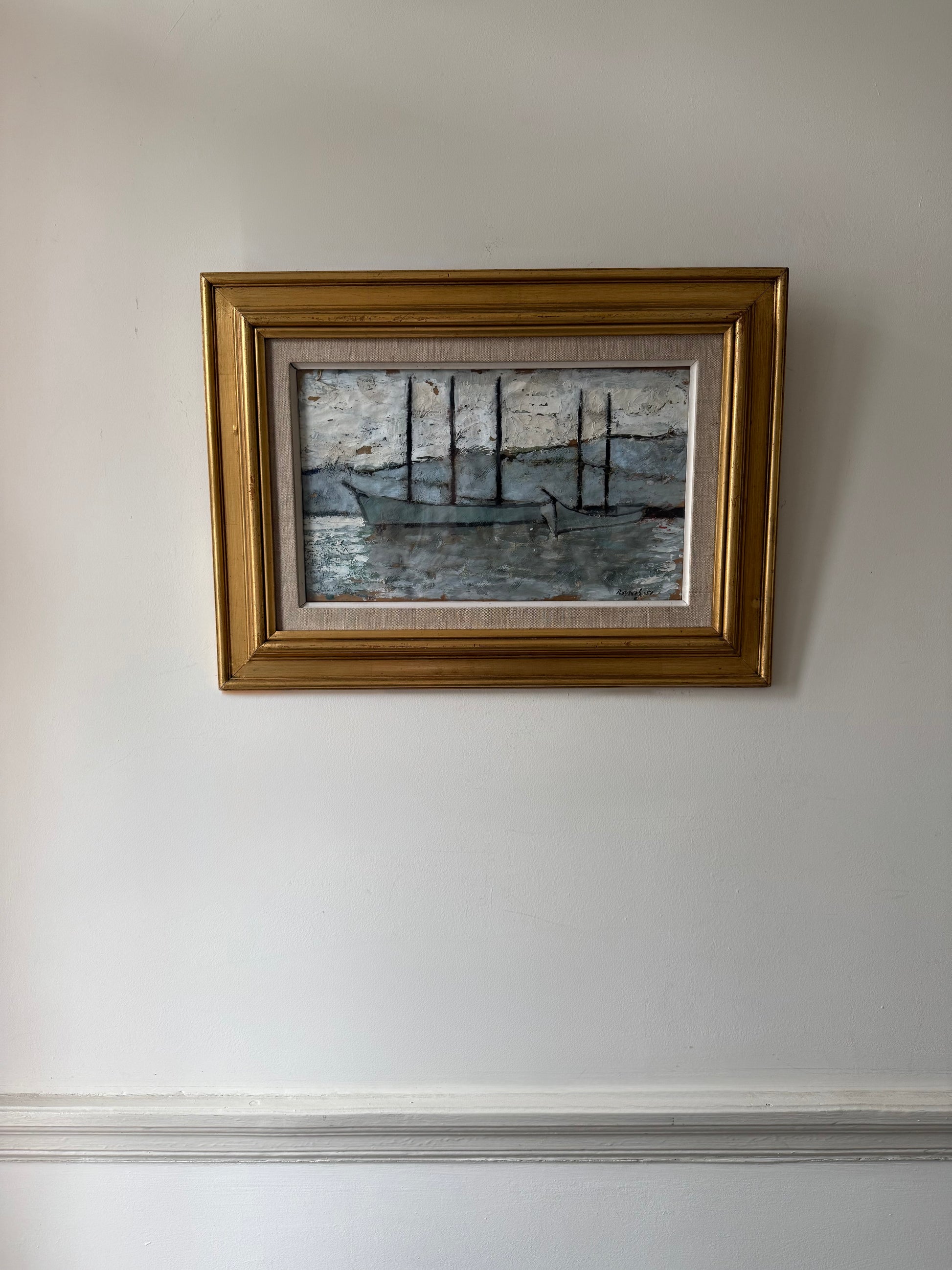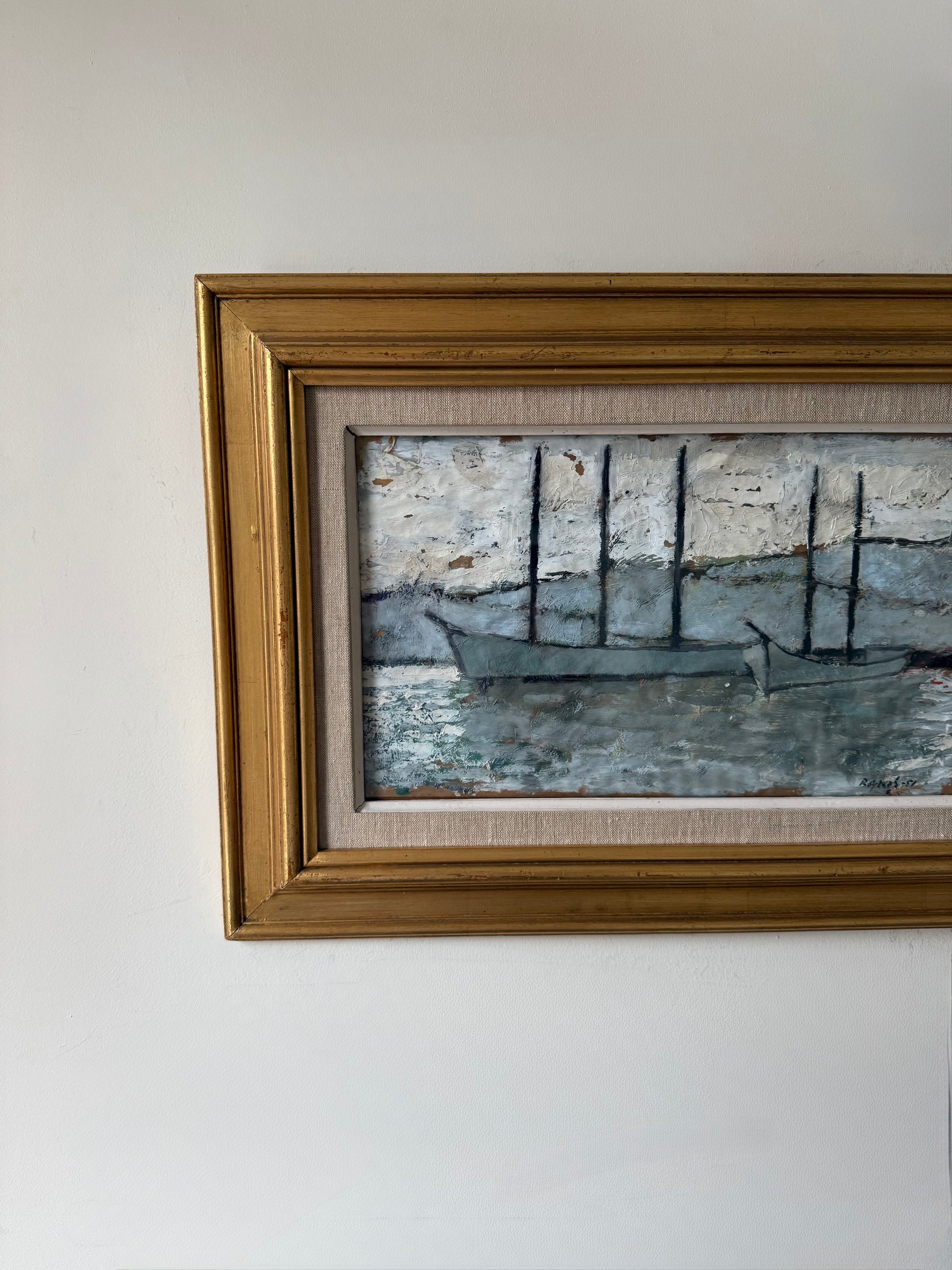 Beautiful delicate oil on paper of sailing boats in Palma.