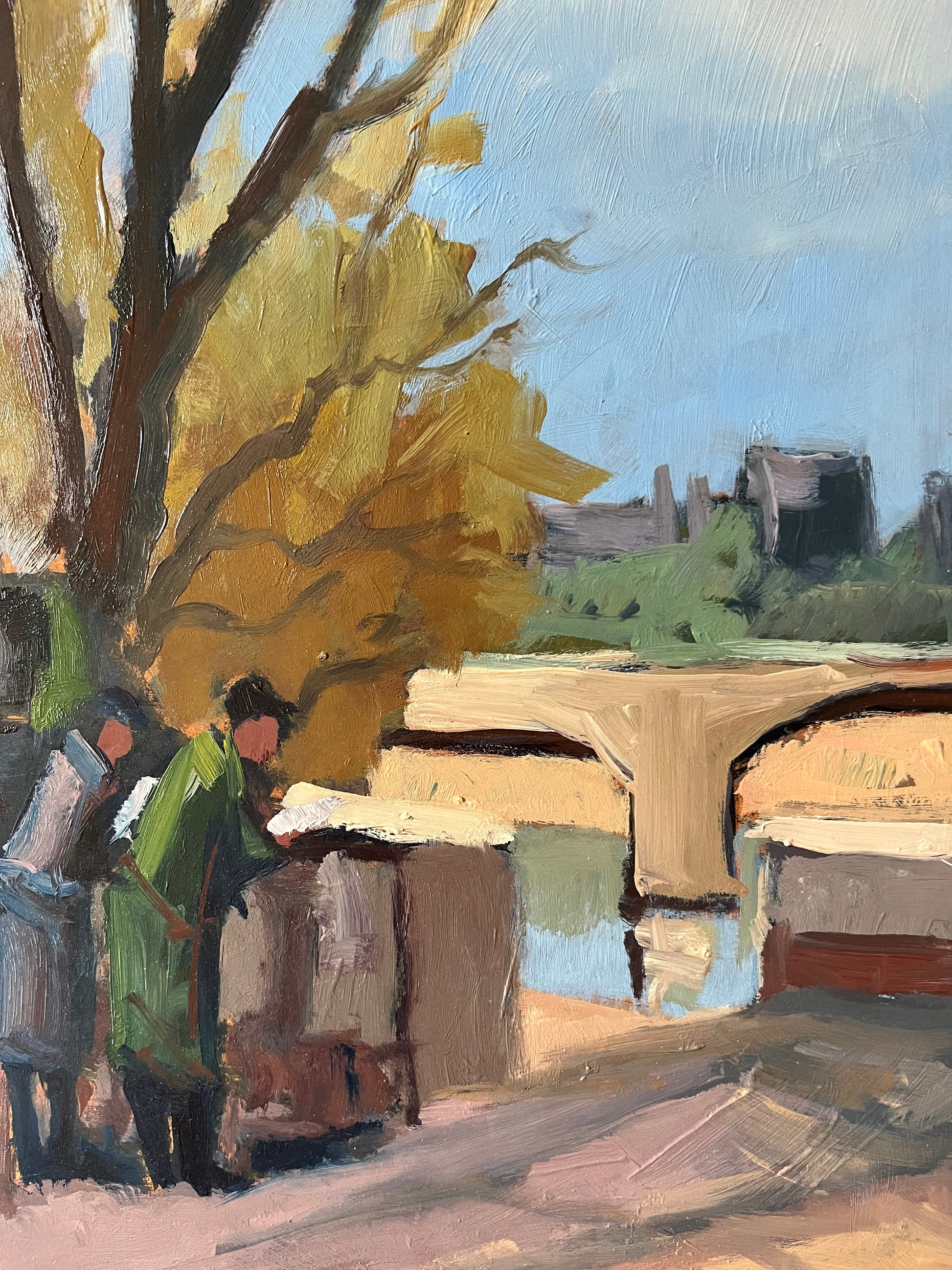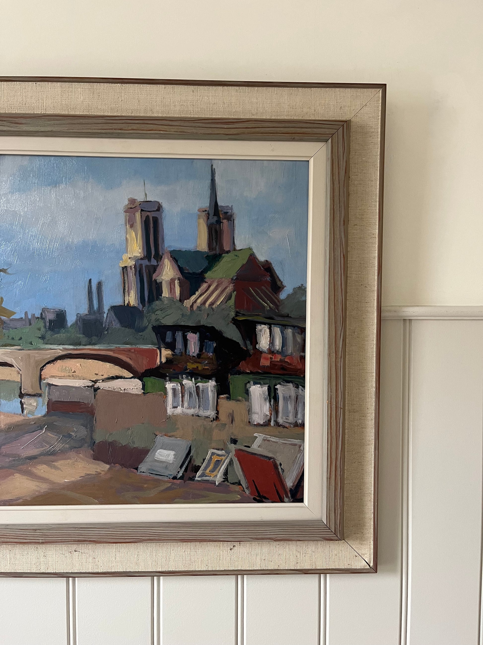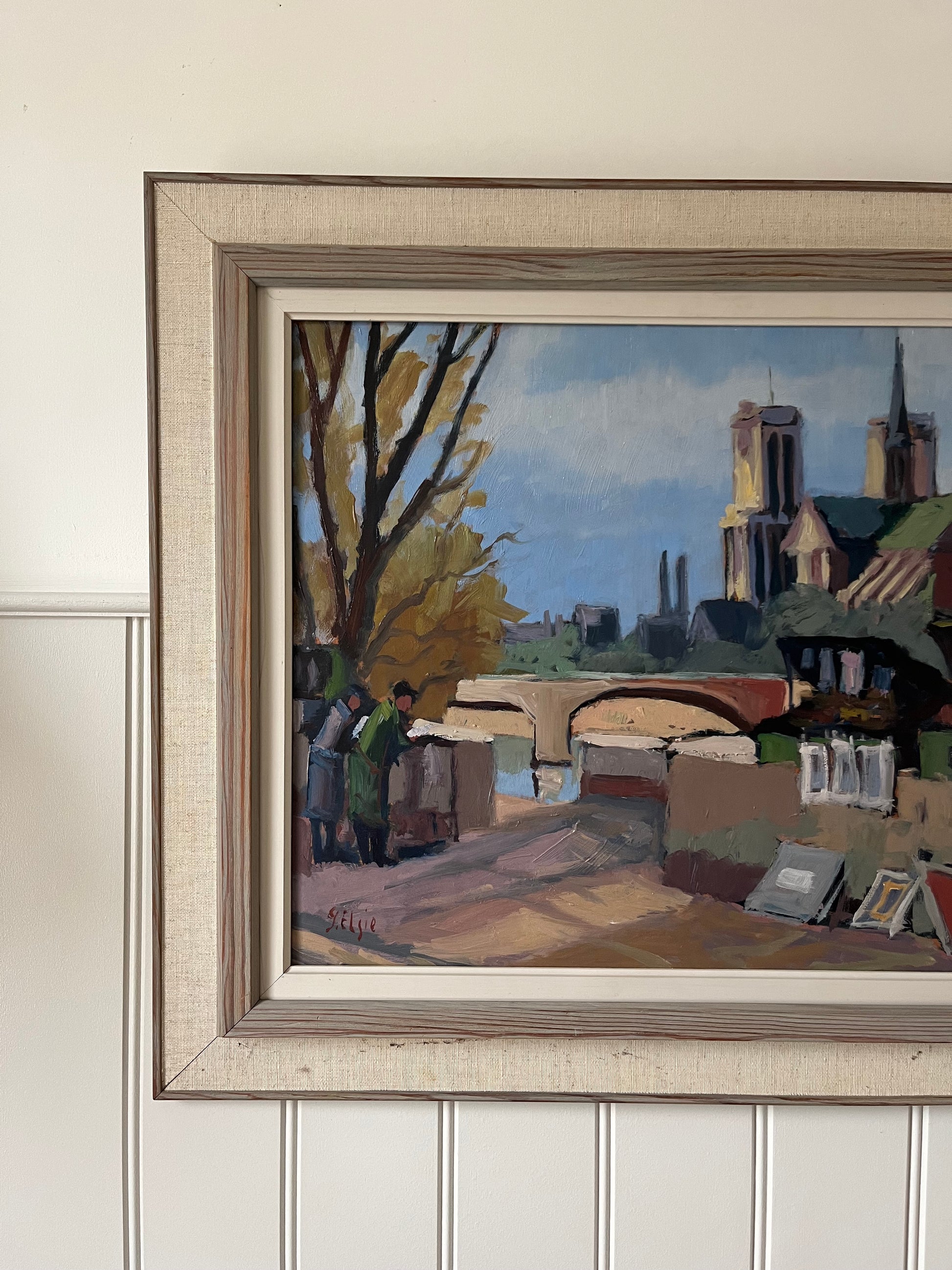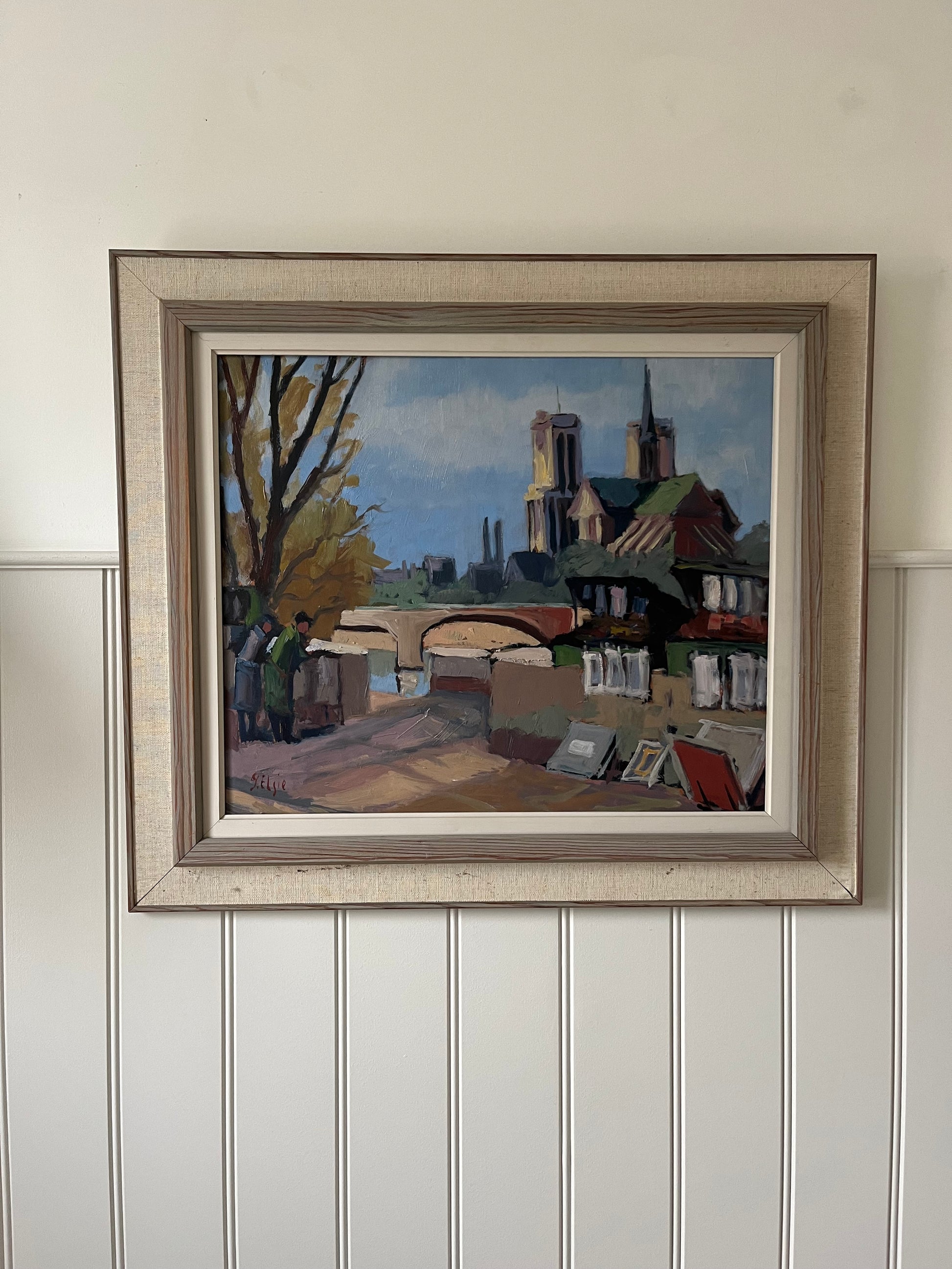 Oil On board in a beautiful frame. A lovely crisp autumnal day wits French artists pairing the Notre Damn.