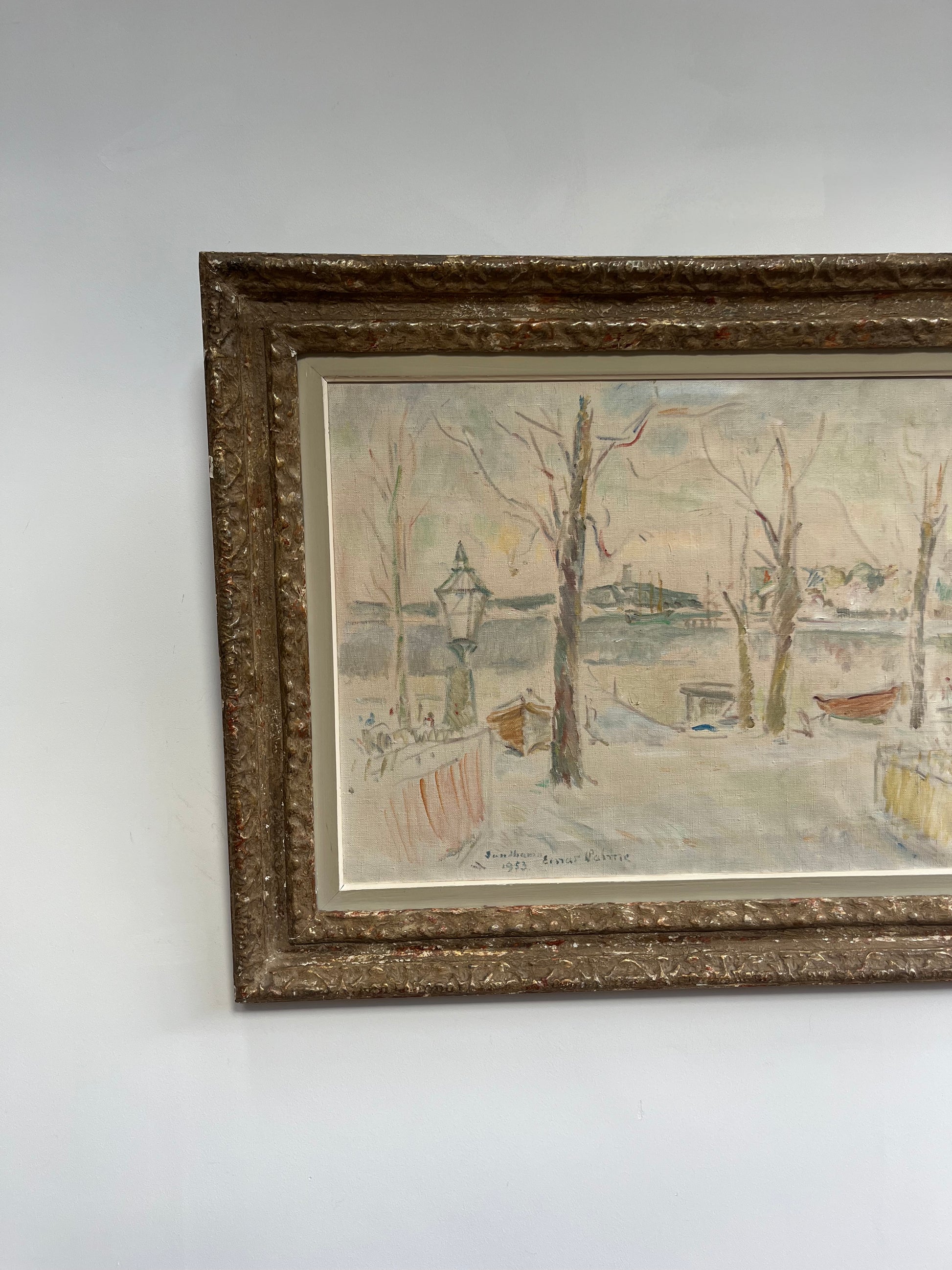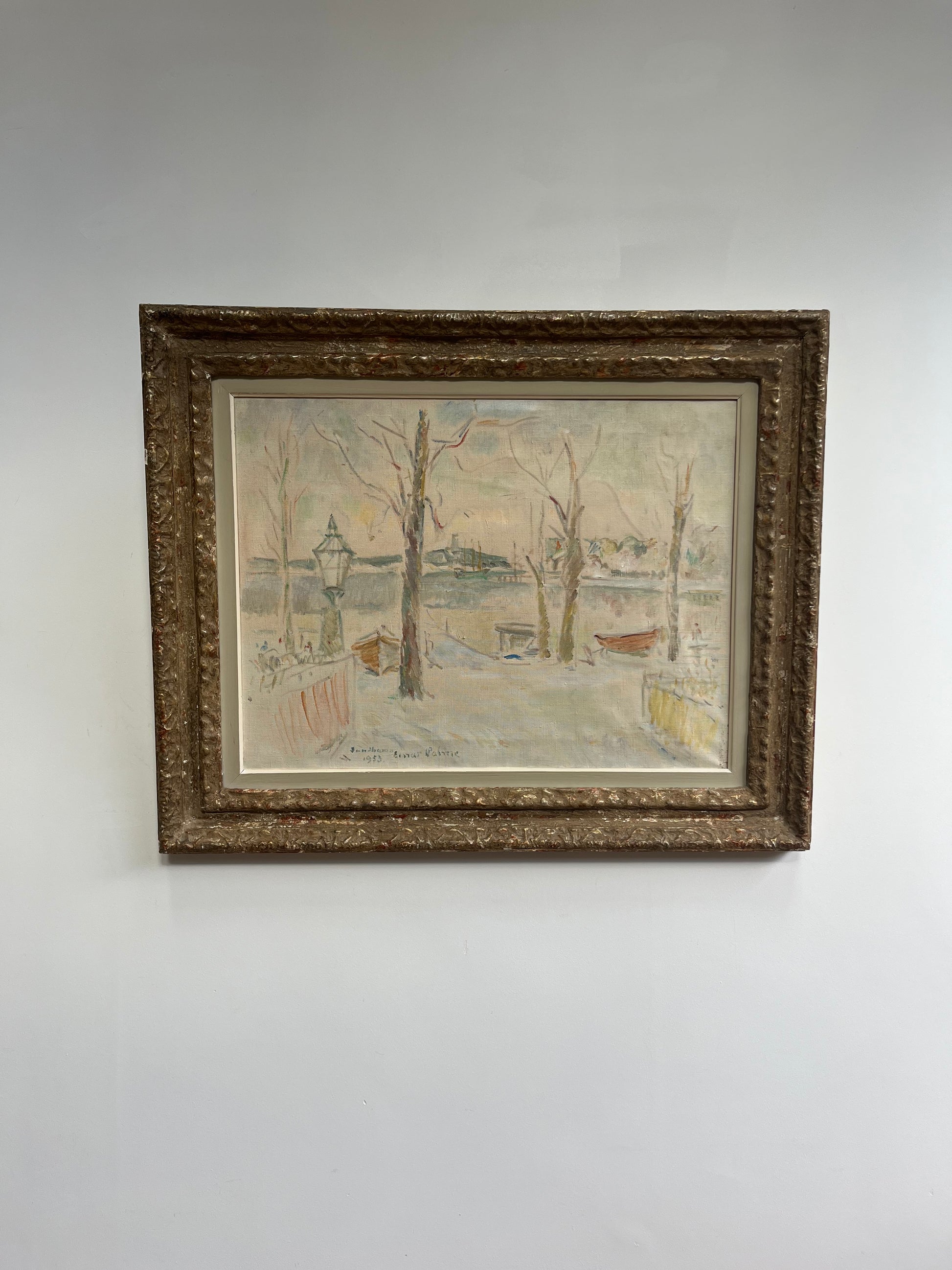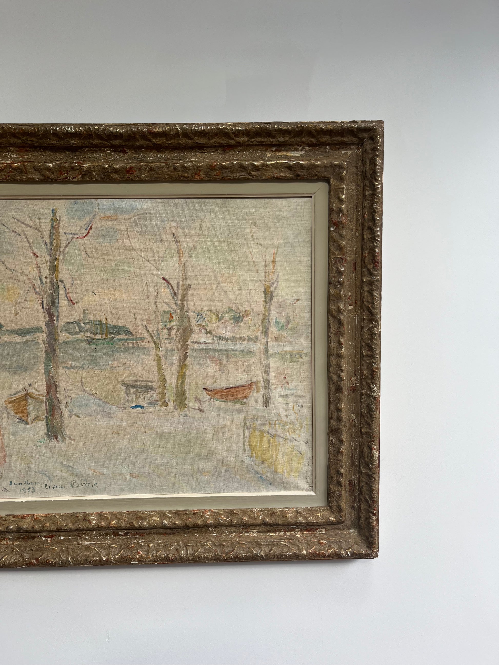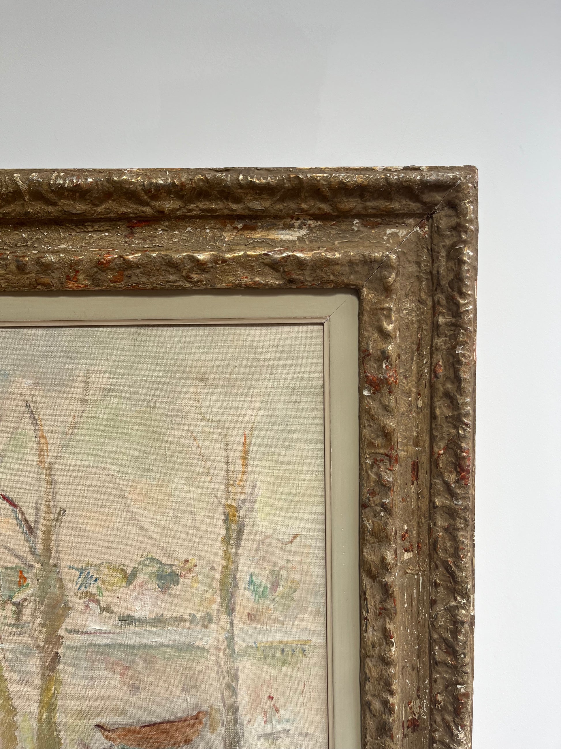 Sensational oil on canvas with a beautiful neautral colour scheme directing a river view. Incredible old chippy frame. Our favourite kind!