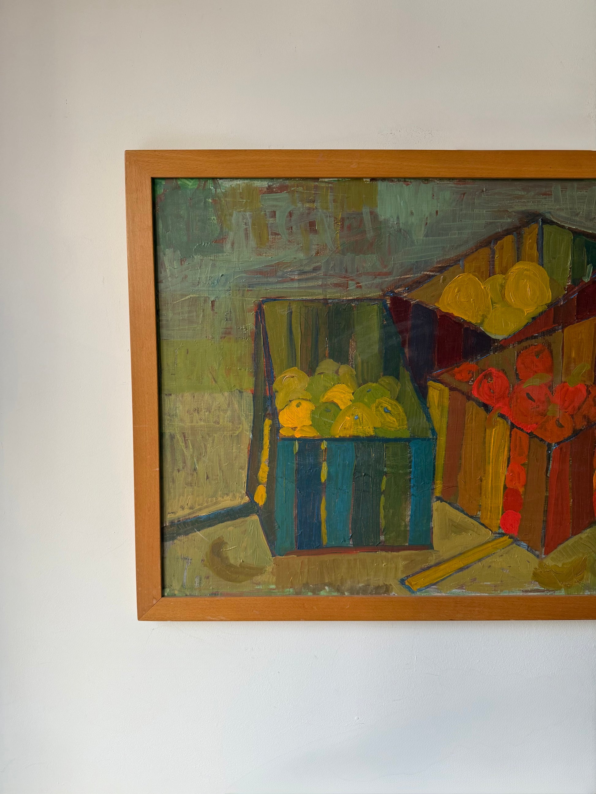 There couldn’t be anything more perfect about this piece - apples (we love apple still life’s), stripes and red blue and brown colour combo. Just sensational!
