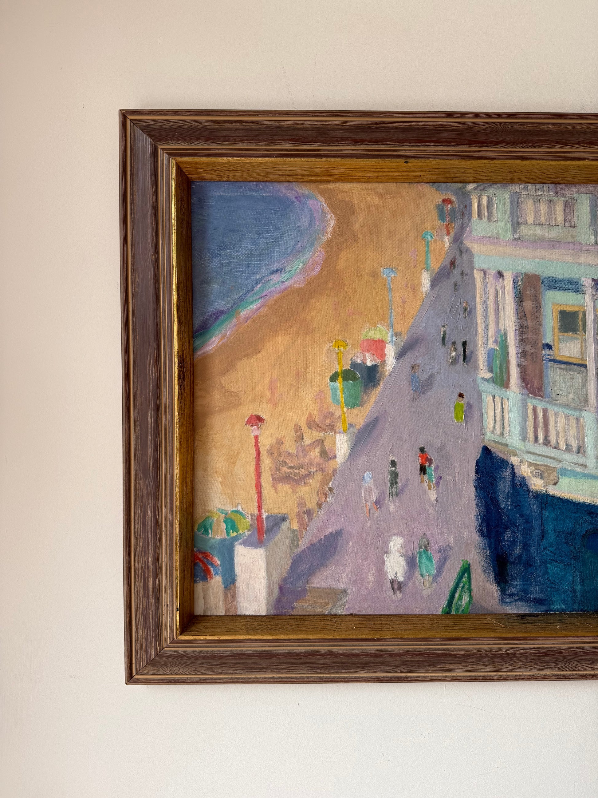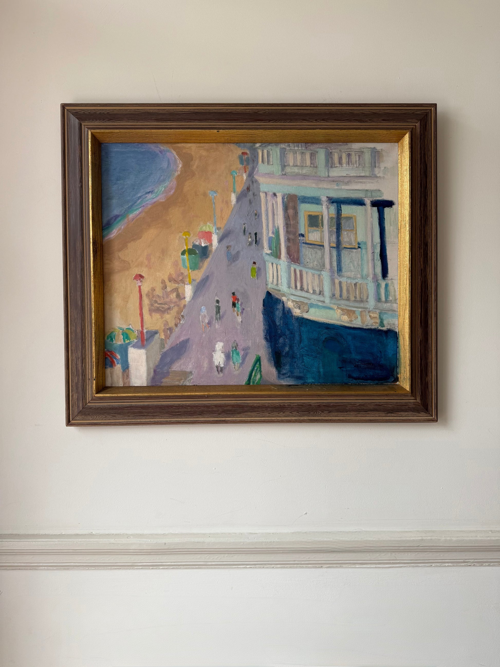 Incredible sea front scene which beautiful pops of colour and colour blocks.