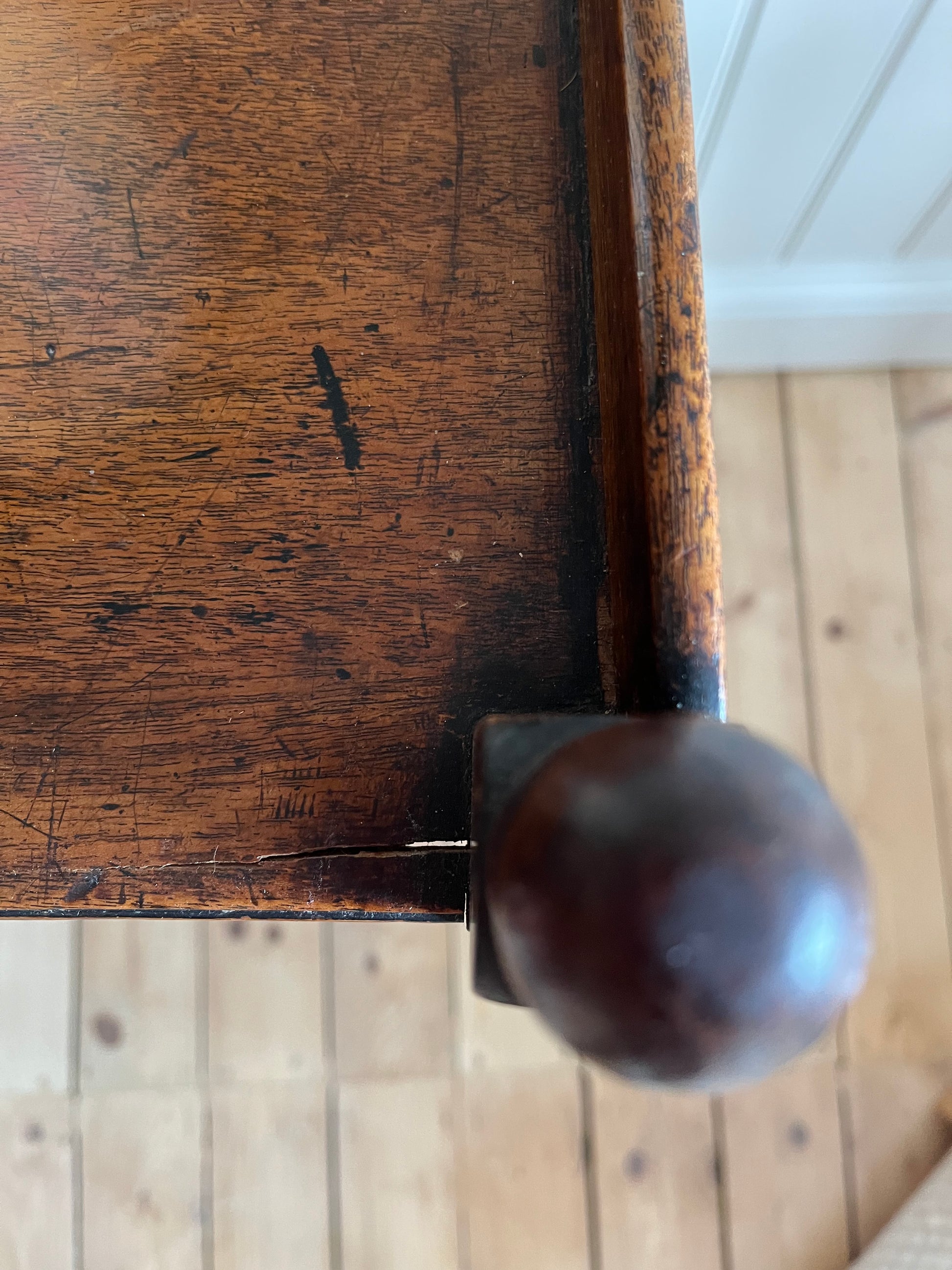 Age related wear and tear with surface scratches but lovely piece nonetheless. Small crack as shown in images.