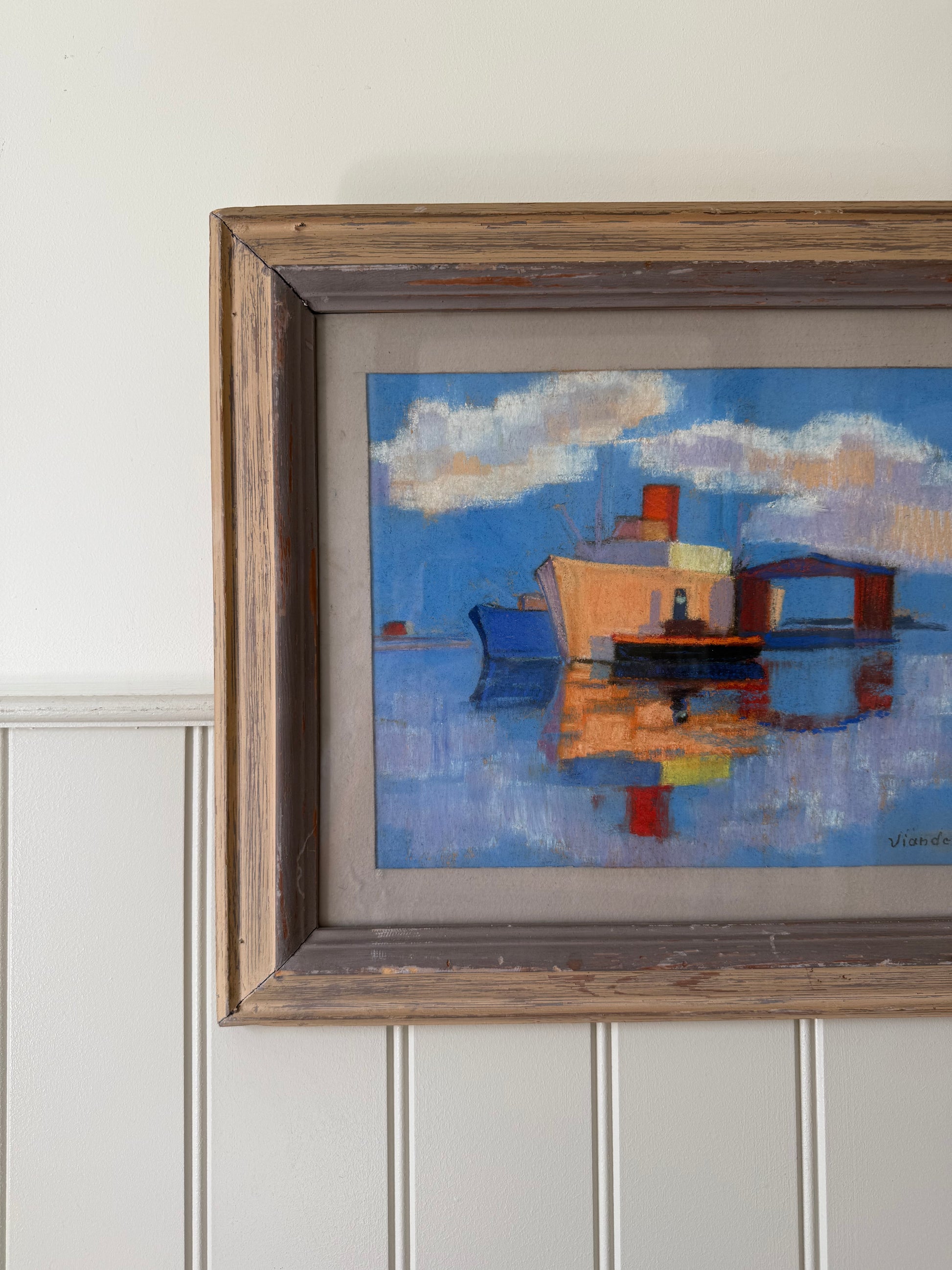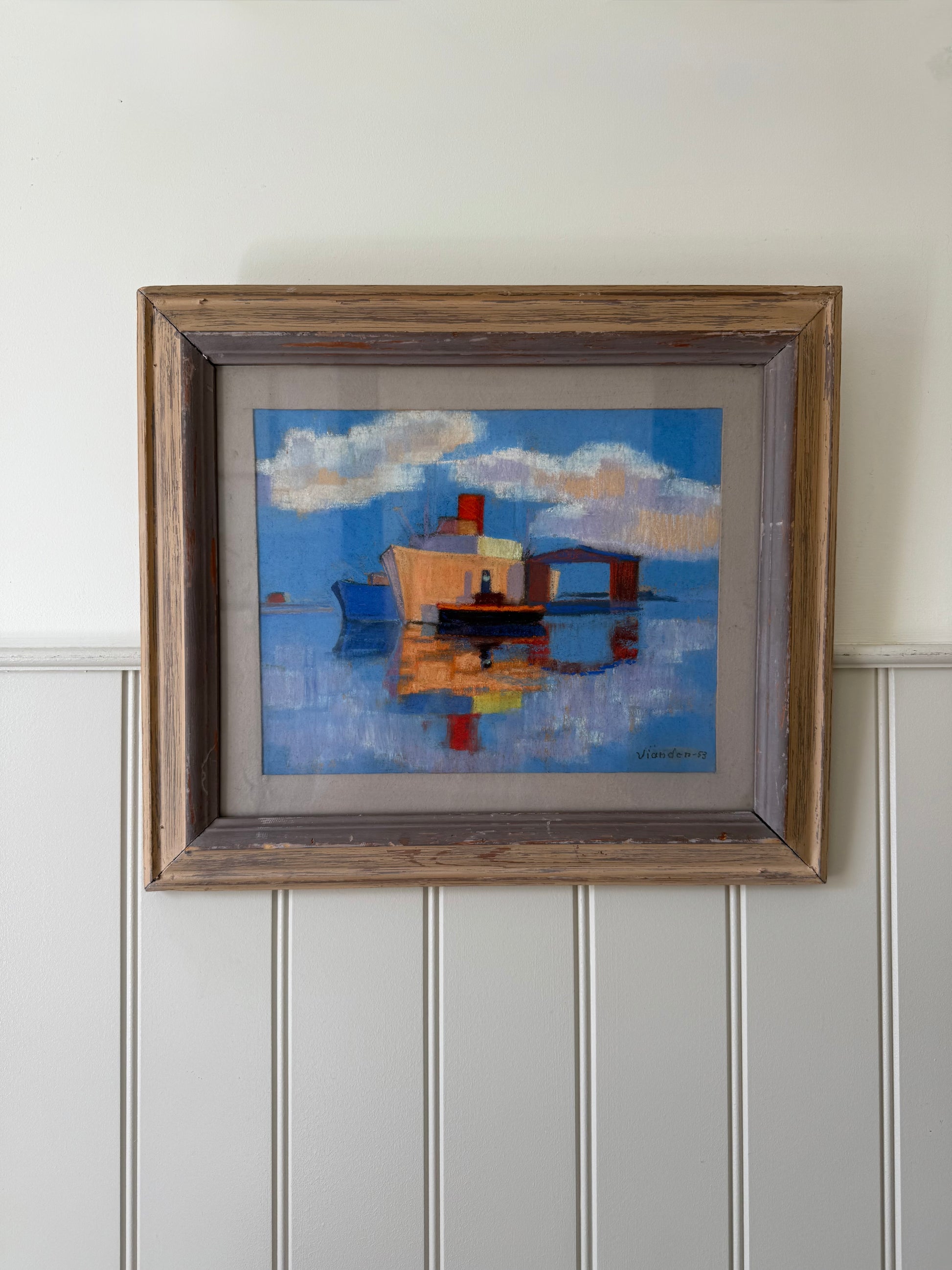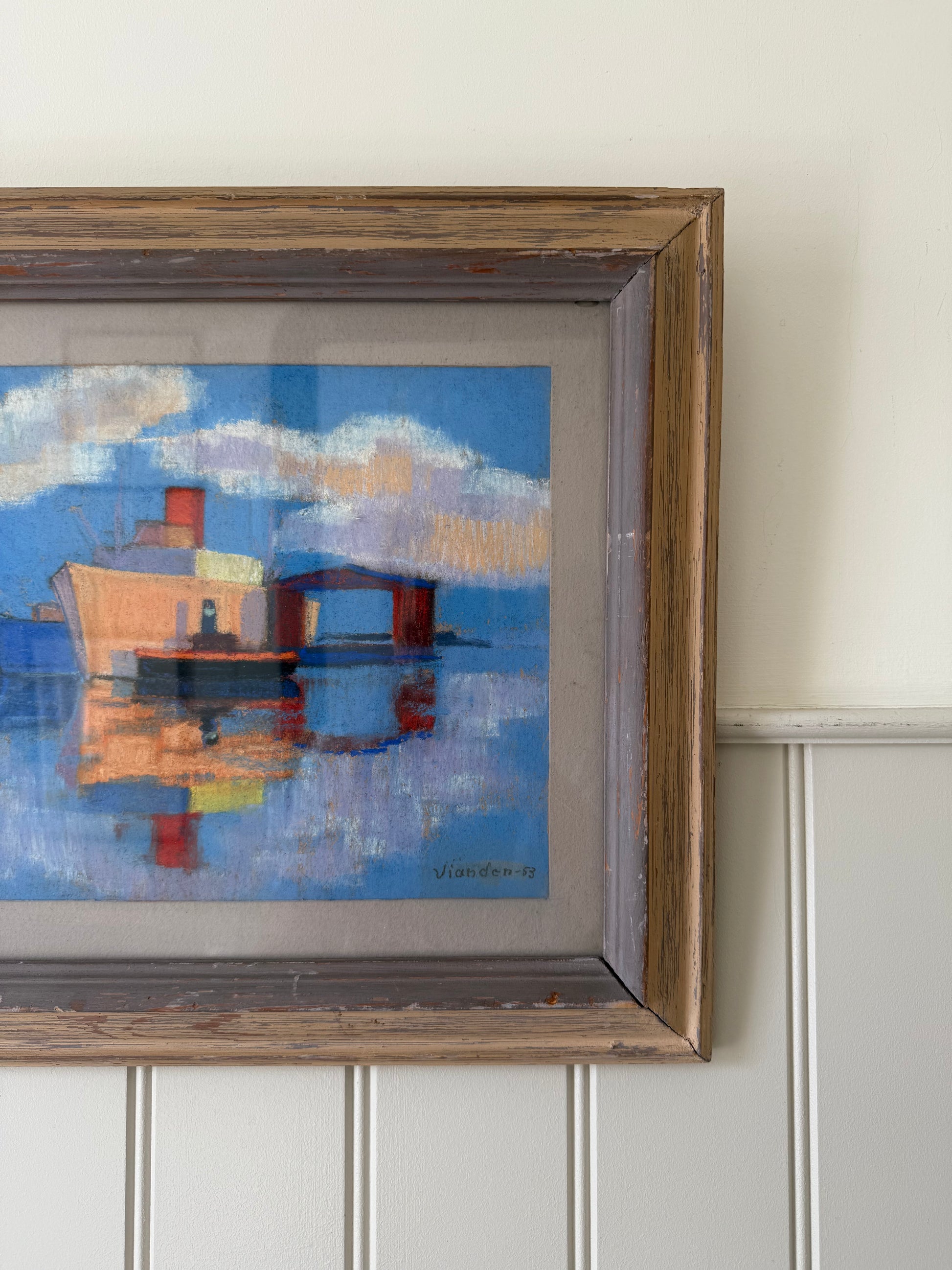 Beautiful vibrant seascape pastel behind a glazed frame. Super lovely piece.