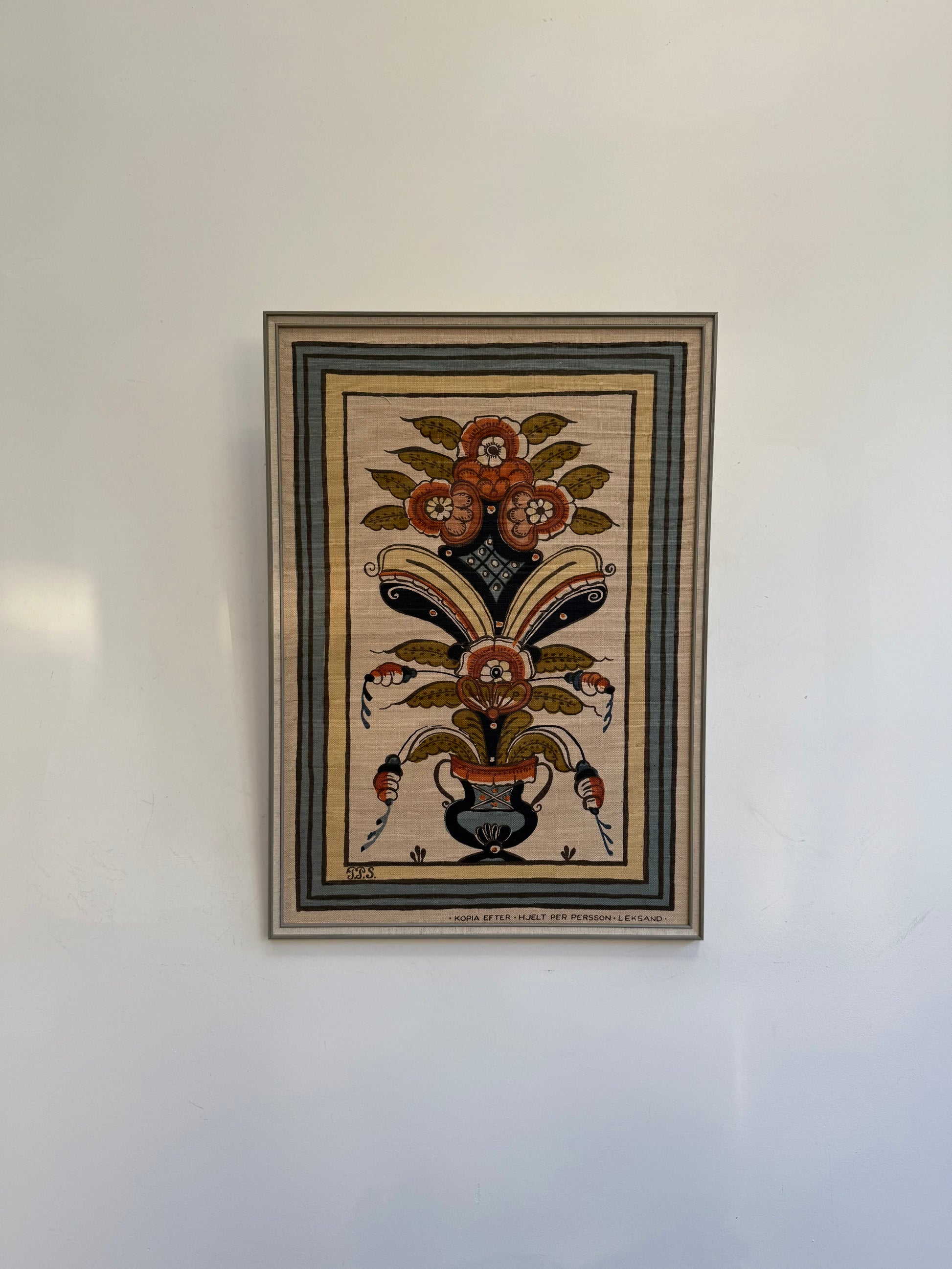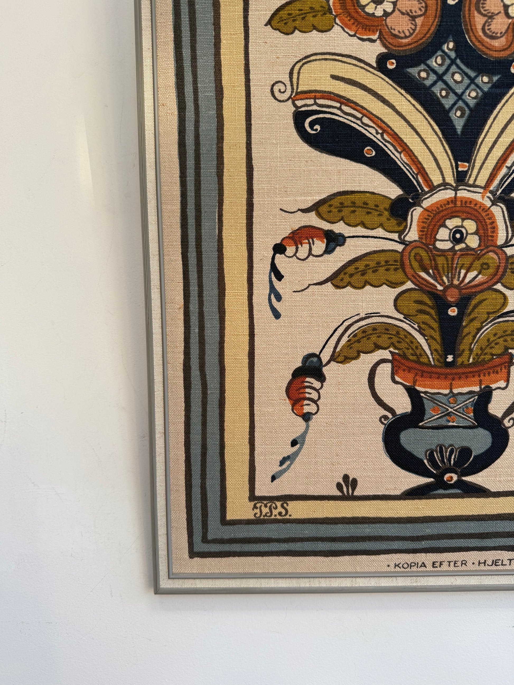 Gorgeous hand printed fabric design in a simple art frame. Adore this and so perfect for a bedroom.