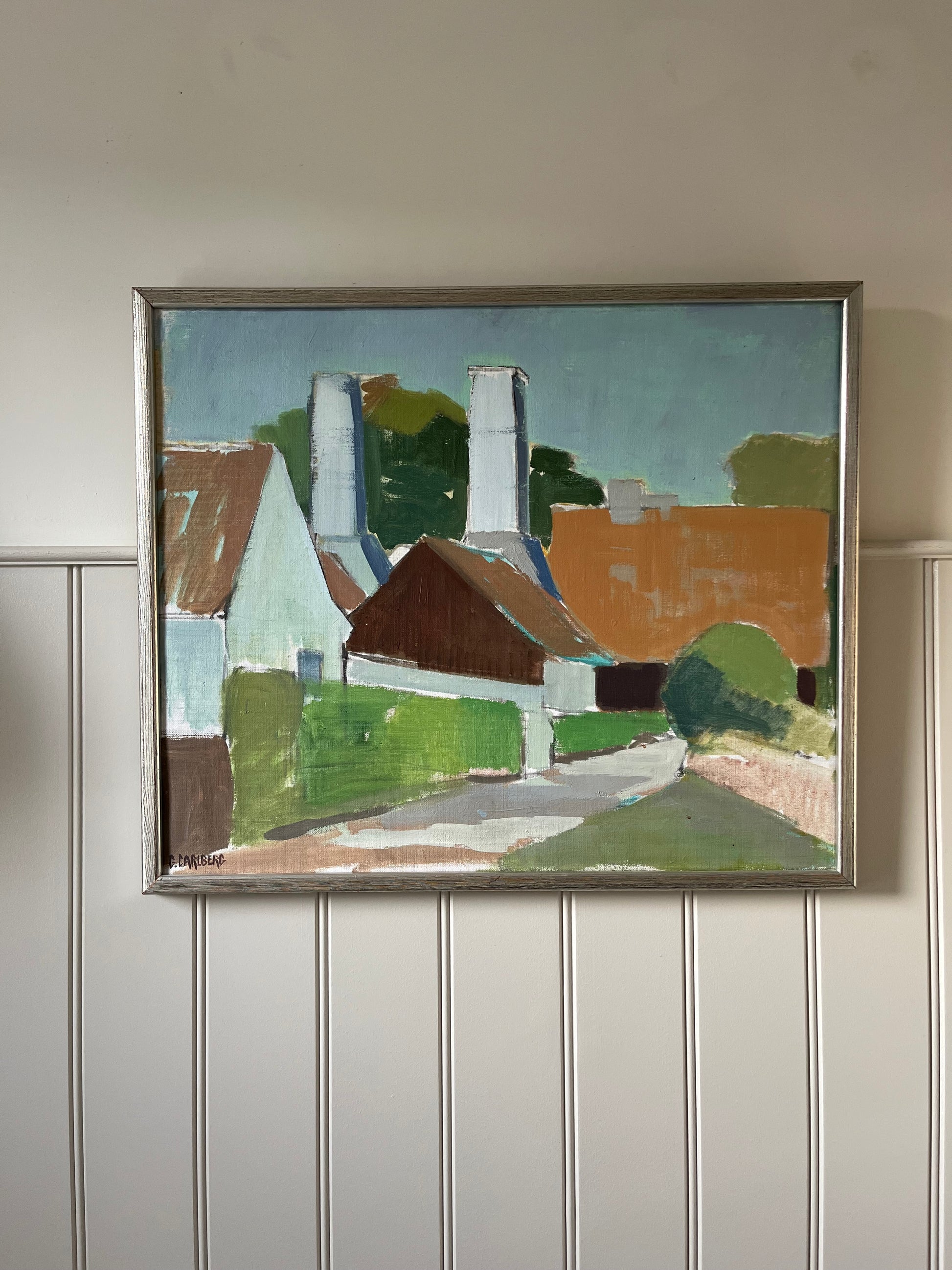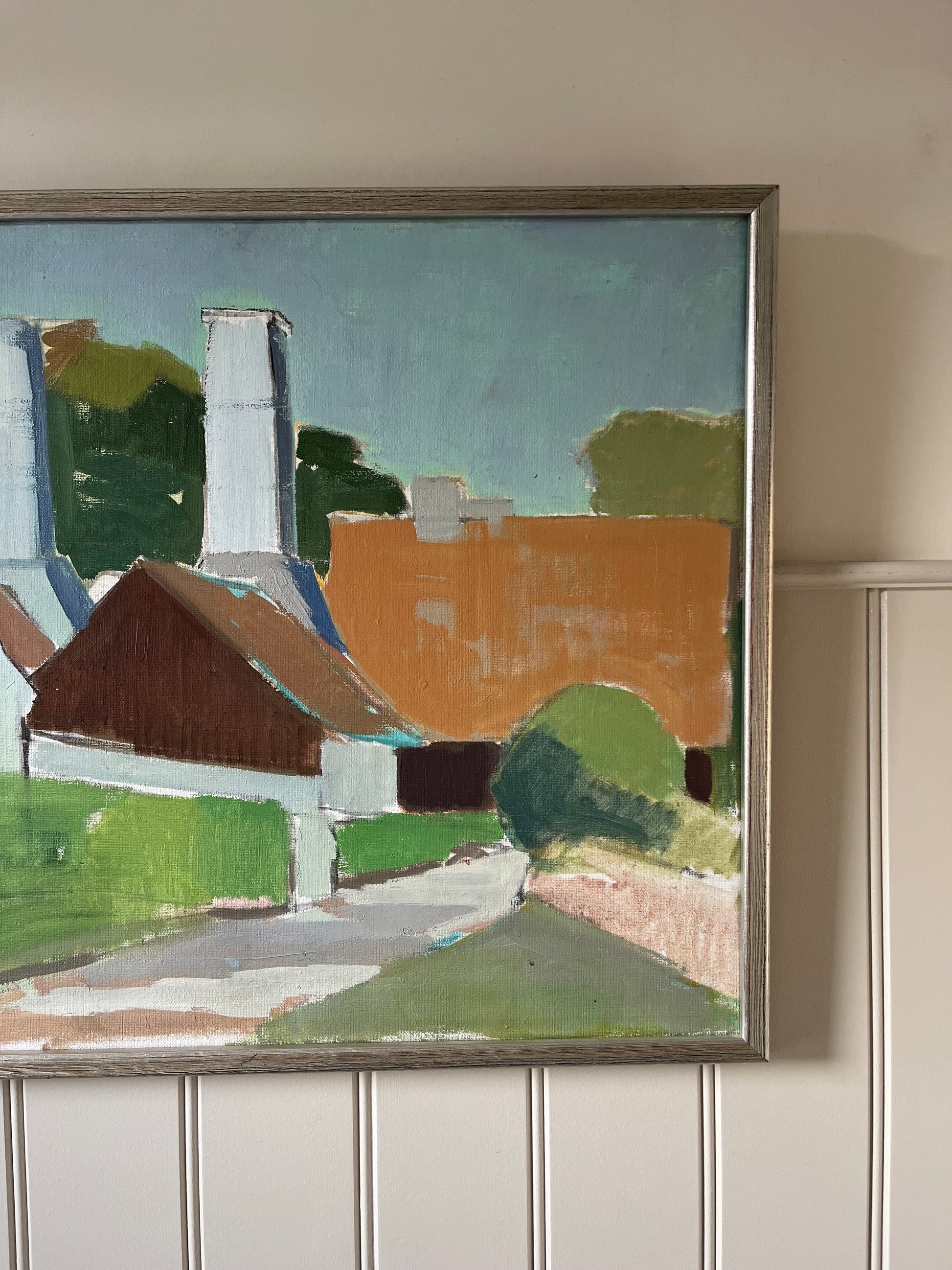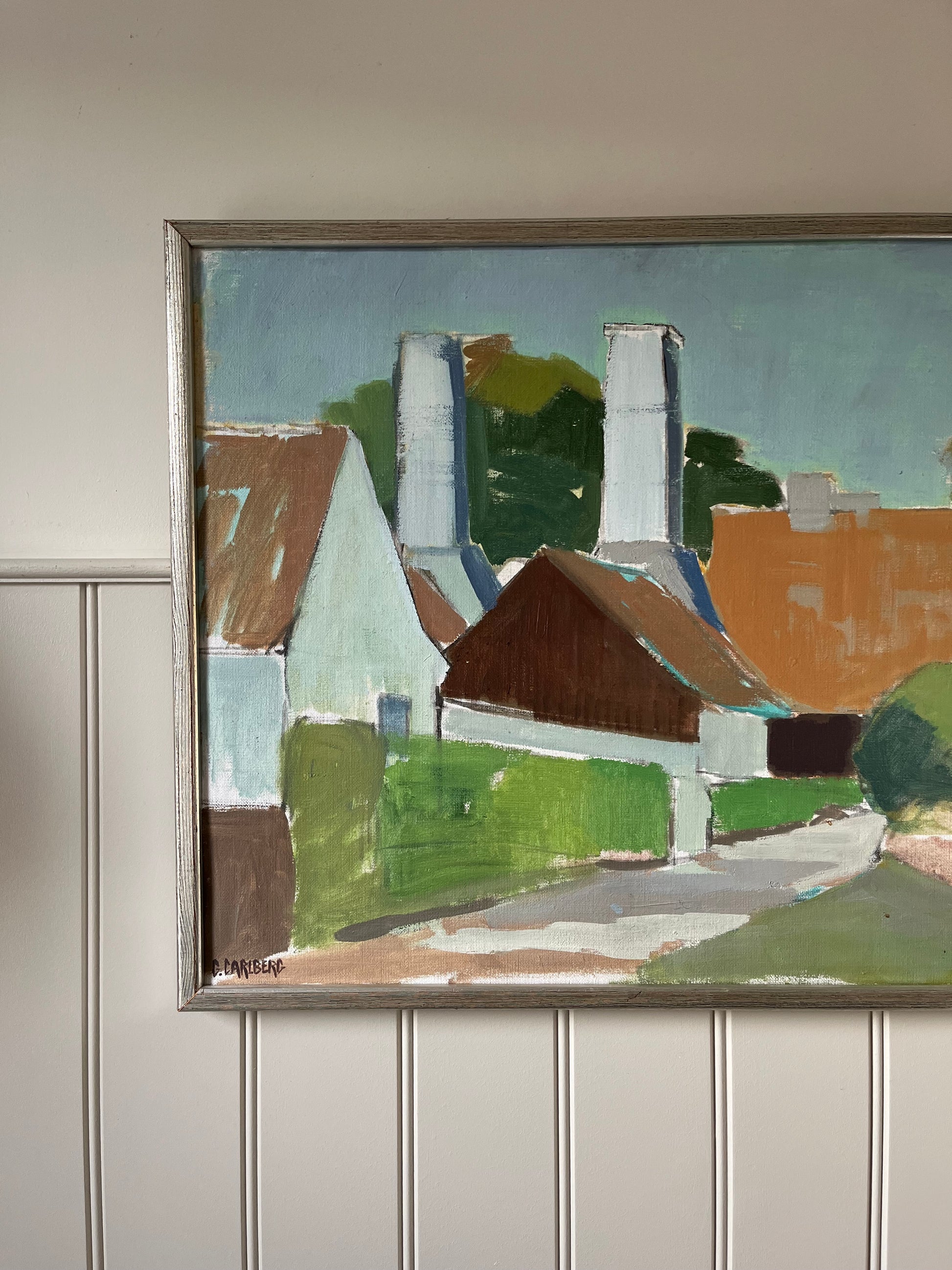 Beautiful landscape oil on canvas of a pretty little village. GREAT colour combinations - particularly the brown.